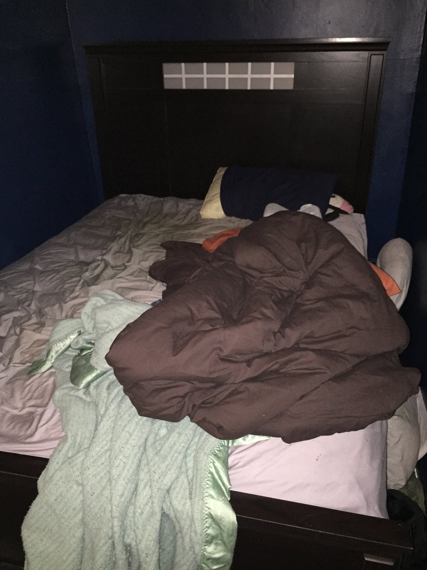 A day late but WTF does DH do getting out of bed in the morning to leave it looking like this?! My snoogle is even on the floor turned the other way around (it's modified to be candy cane shaped instead of a C).
