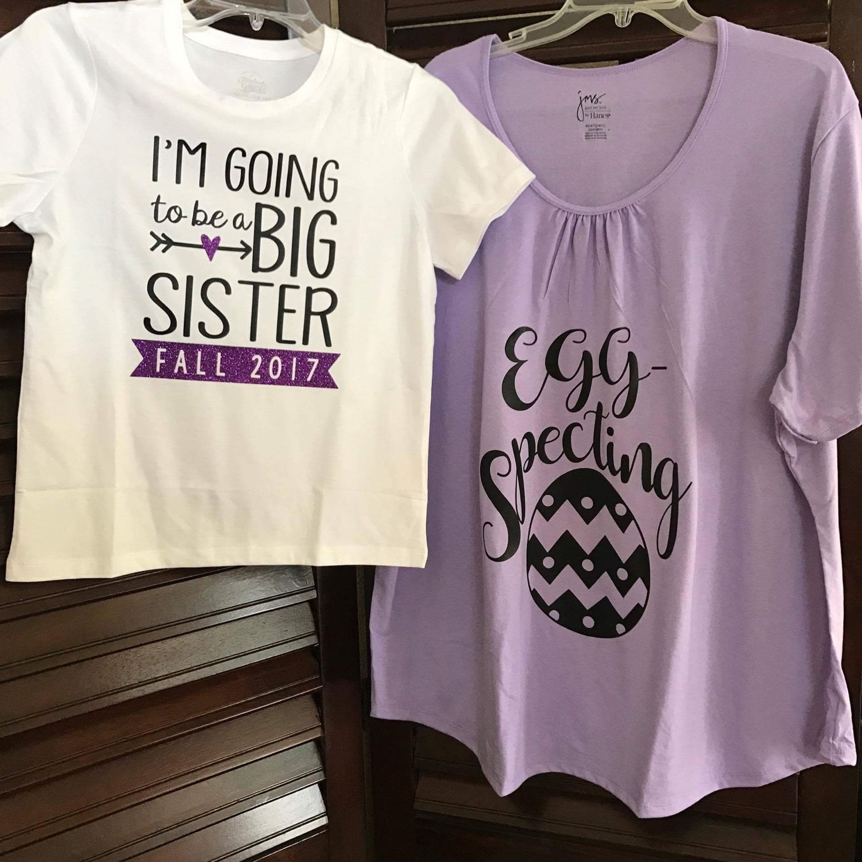 His brother and his wife are expecting in June so for his parents, I made Big Cousin, Middle Cousin, Little Cousin shirts to tell them the news.