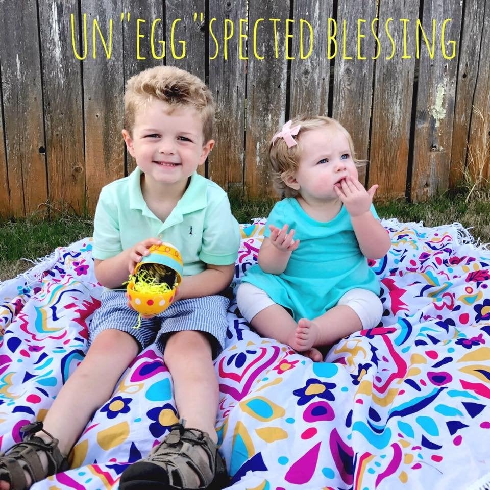 We did this as our facebook announcement on Easter. The caption told everyone that our un"egg"spected blessing will be joining us in November!