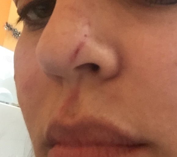 It actually doesn't look as bad as I expected it would, though I do also have a small scratch on my forehead.