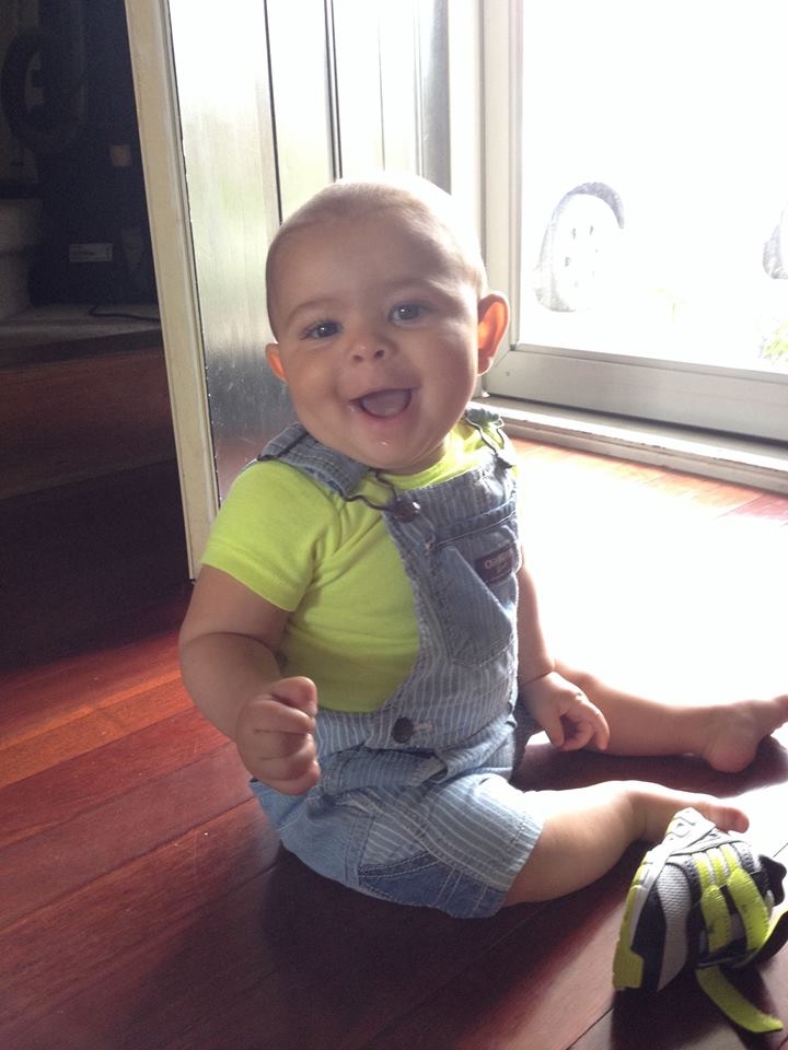 First picture is from a couple weeks ago when he got to experience grass and he loved it. The second one was this Monday when Grandma was being silly. He is always smiling.