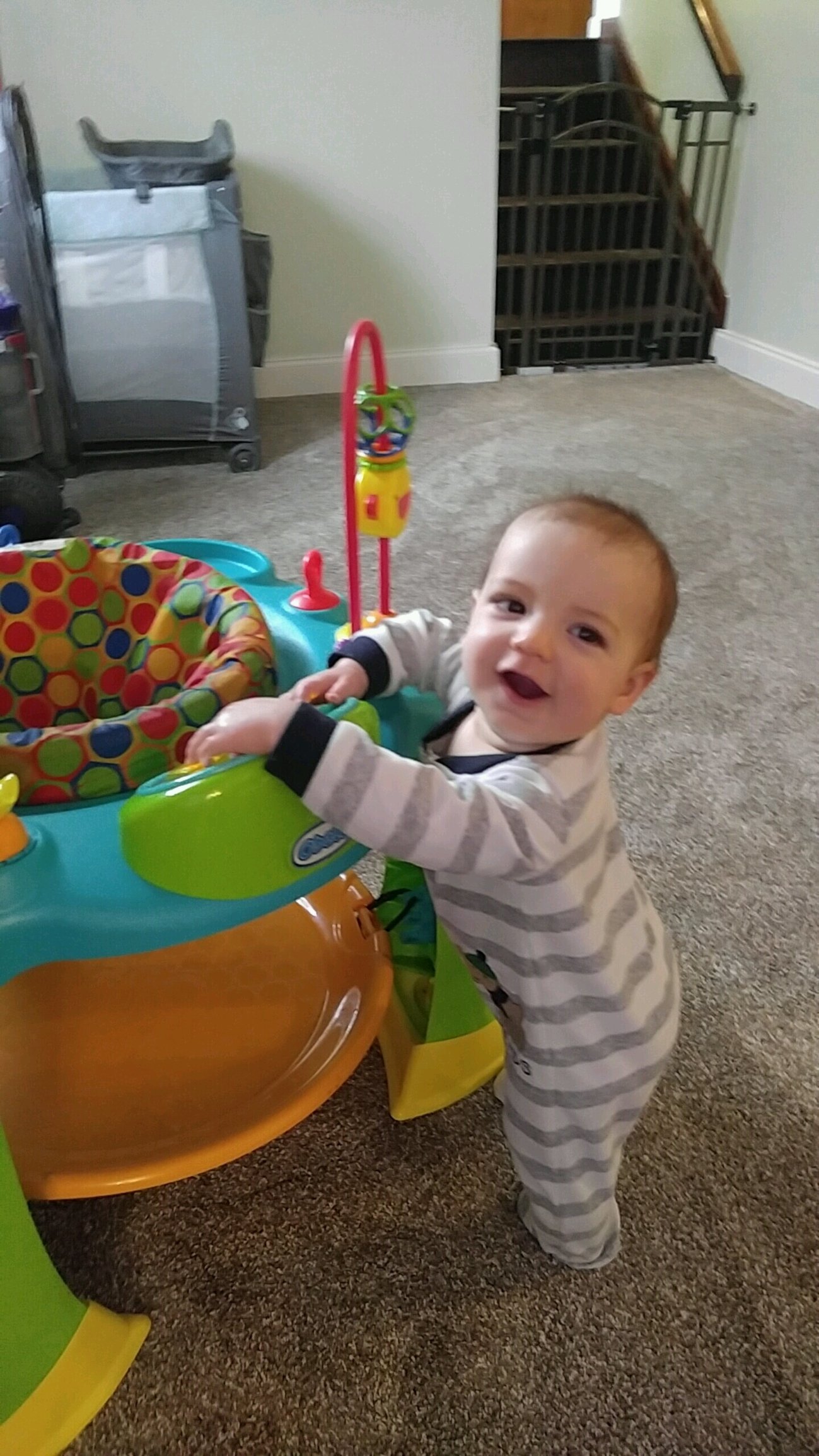 @hejo2016 we had tried a coupletimes before without sitting him in it but he didn't want anything to do with it. Grandma was watching him and it was nice out so they spent some time outside and he just had a blast in the grass.