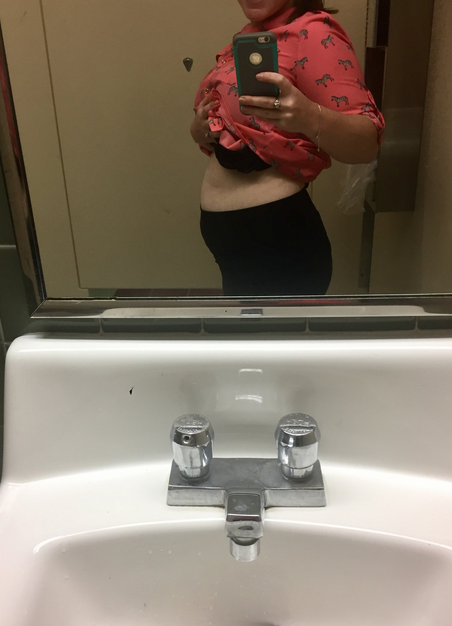 I don't have a pic, but this is my fifth pregnancy and damn. I still have leftover baby weight, but the belly is starting to round out and I won't be able to hide it much longer.