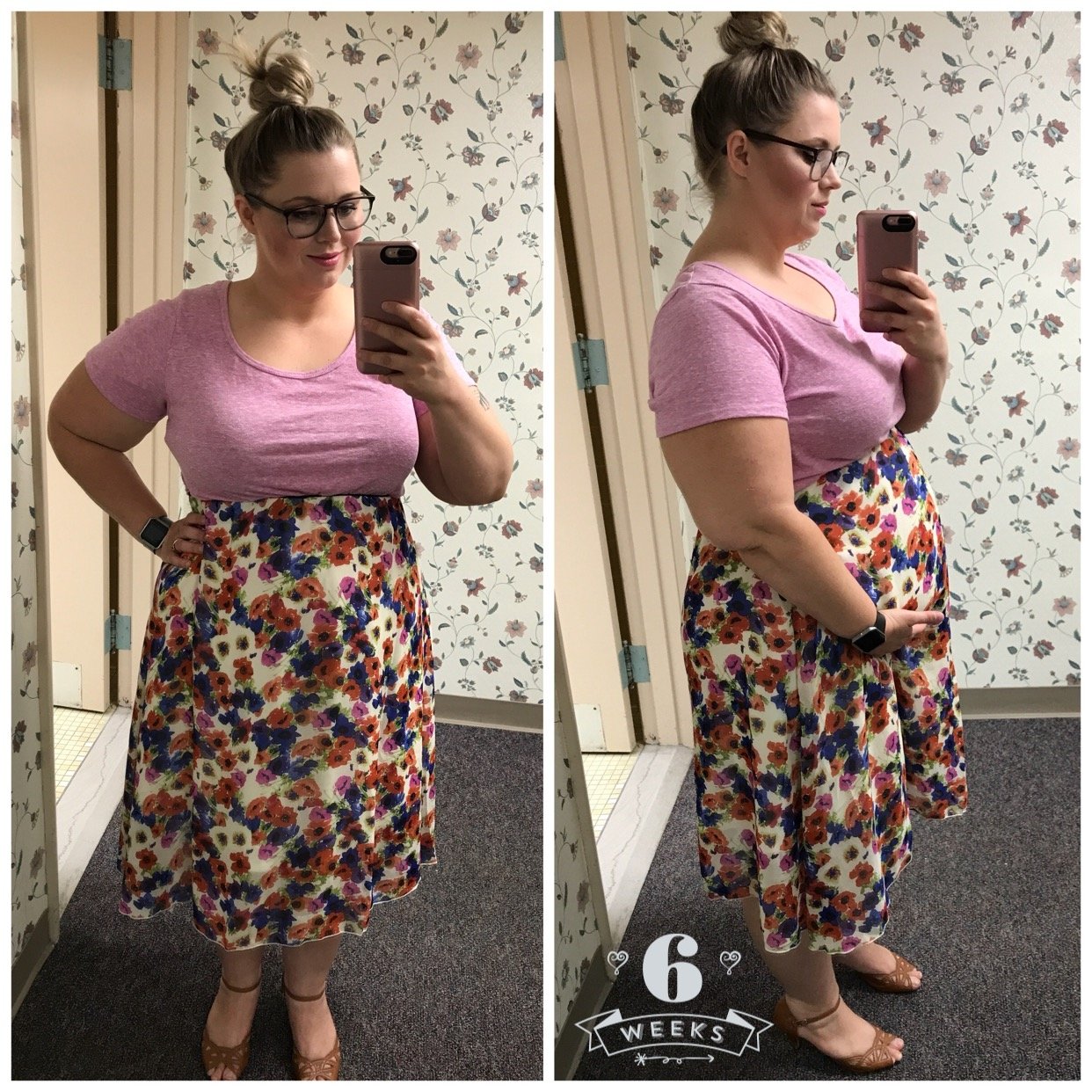 6 weeks. I'm all bloat. I've heard your second pregnancies you show earlier. But who knows. Last time I couldn't wait till I showed and this time I'm like can this bloat and faux bump go away. I feel even more pudgy than usual. Also, last time my feet swelled up sooo early so I'm wearing my heels and ankle straps as long as I can.