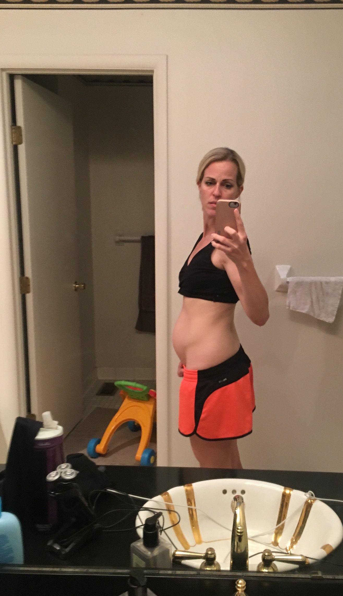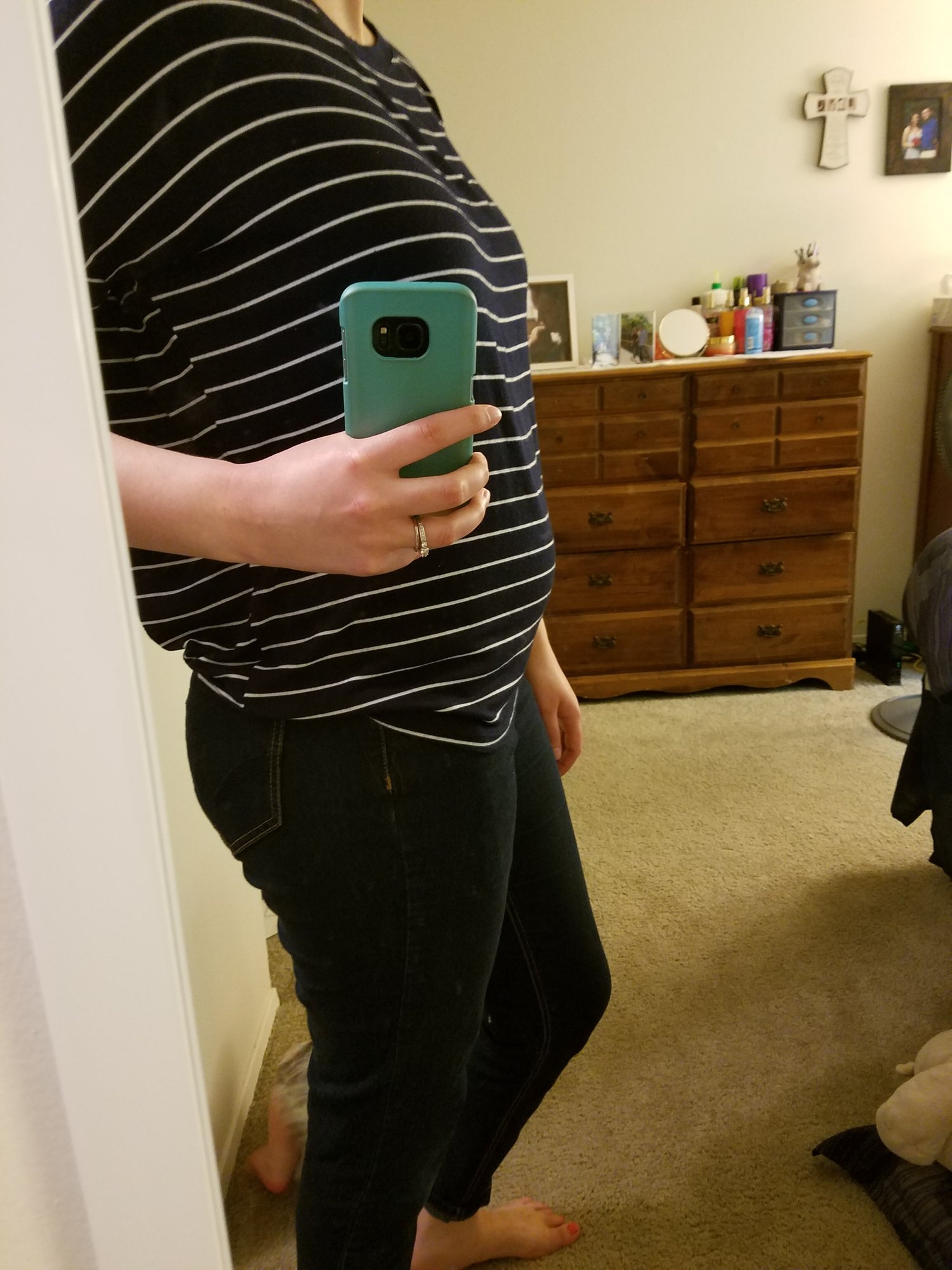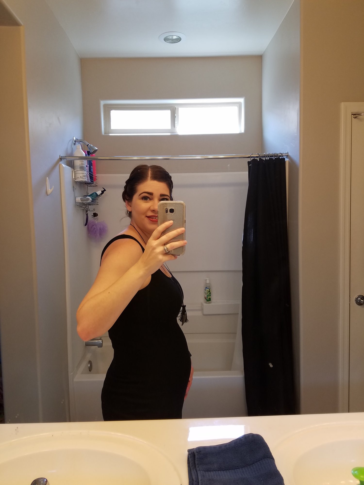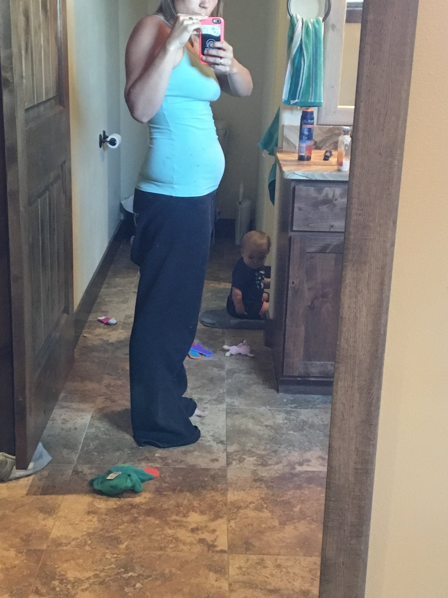 I think this photo and my stomach are massive. Glad I'm not alone in the shock (horror?) of how huge I am already. Also, note the state of my bathroom, lol. Bad wife/mom/member of the human race today! 10 weeks!