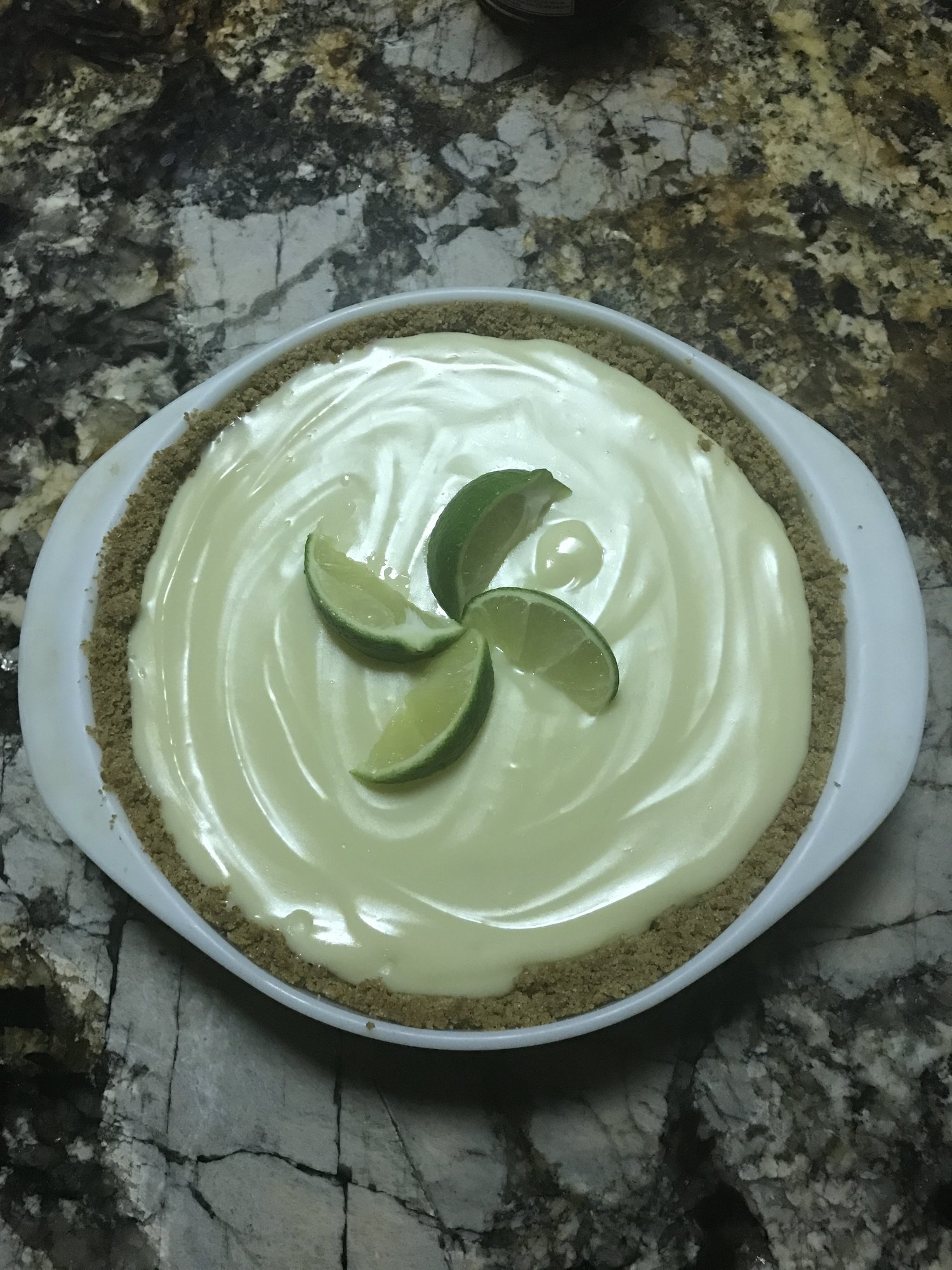 Baby is the size of a lime, so I made a key lime pie. Isn't settling well on the stomach but it was worth it:)