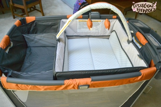 In the spoiler box are some pics of pac-n-plays similar to the one we have... so it has a bassinet area that is big enough for two new born twins, then once they get older we took off the changer attachment and could have the mat streched out the full length but it was close to the top.