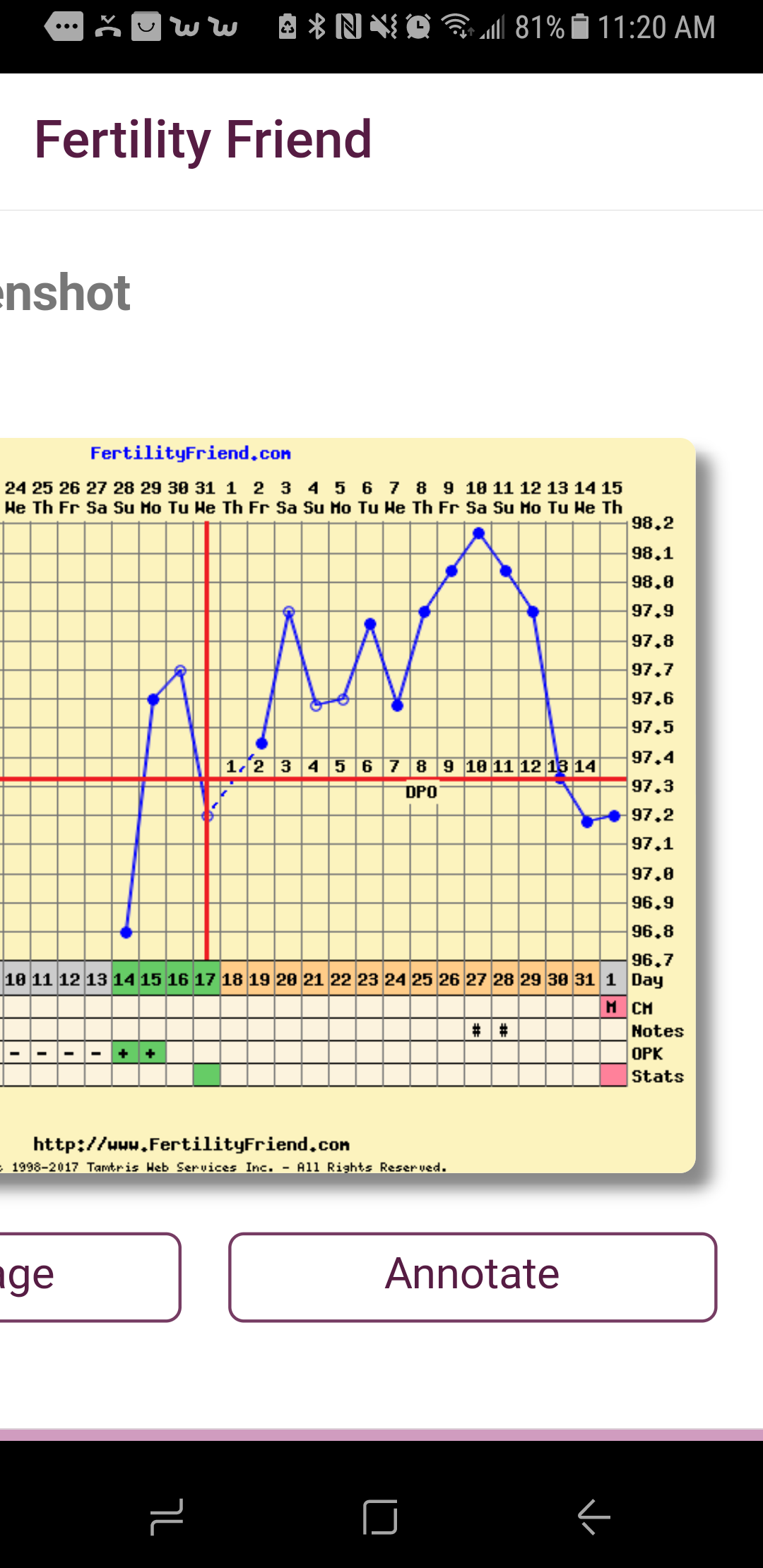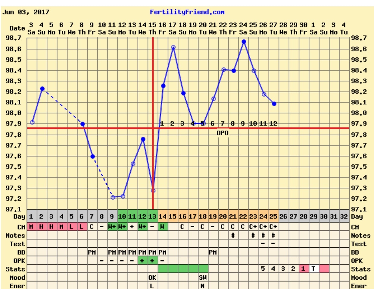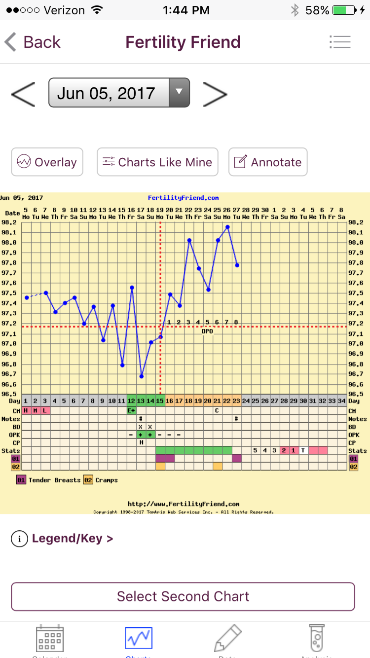 Here is last month's chart. I bought my thermometer off Amazon it had 4 stars and is called one step? Thanks for the CM guide. I haven't had any dry or crumbly CM it's all be pretty moist and somewhat like cottage cheese in texture? Lol eew but on the watery day it was definitely all water and super watery. The 2 days with the stretchy stuff was along with the cottage cheese stuff...