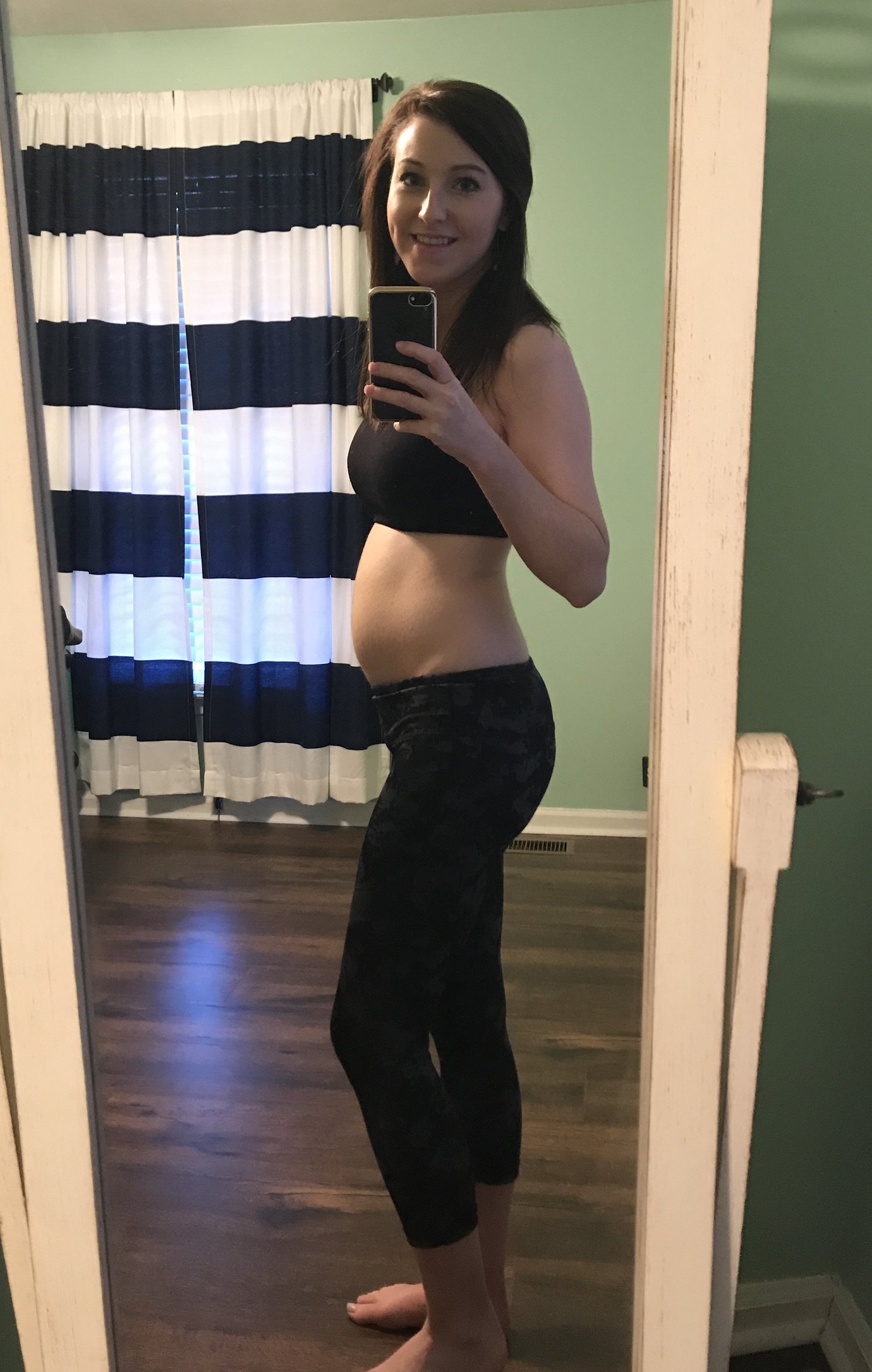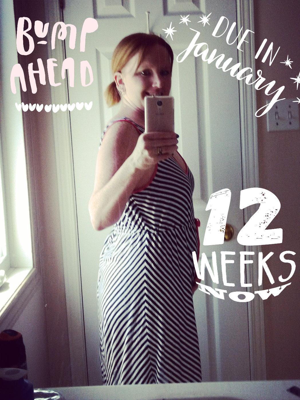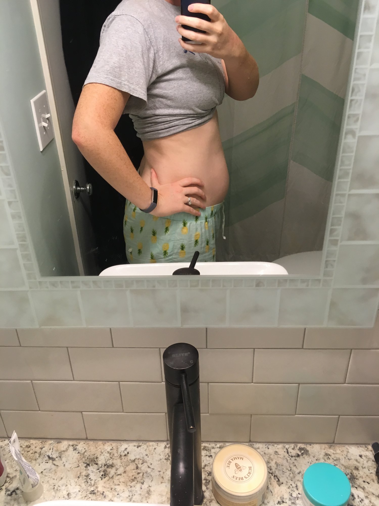 DH took this picture for me yesterday so I don't have to have a bathroom selfie this week. 12ish weeks. Feeling like the bloat is going and my bump looks more the size it should be.