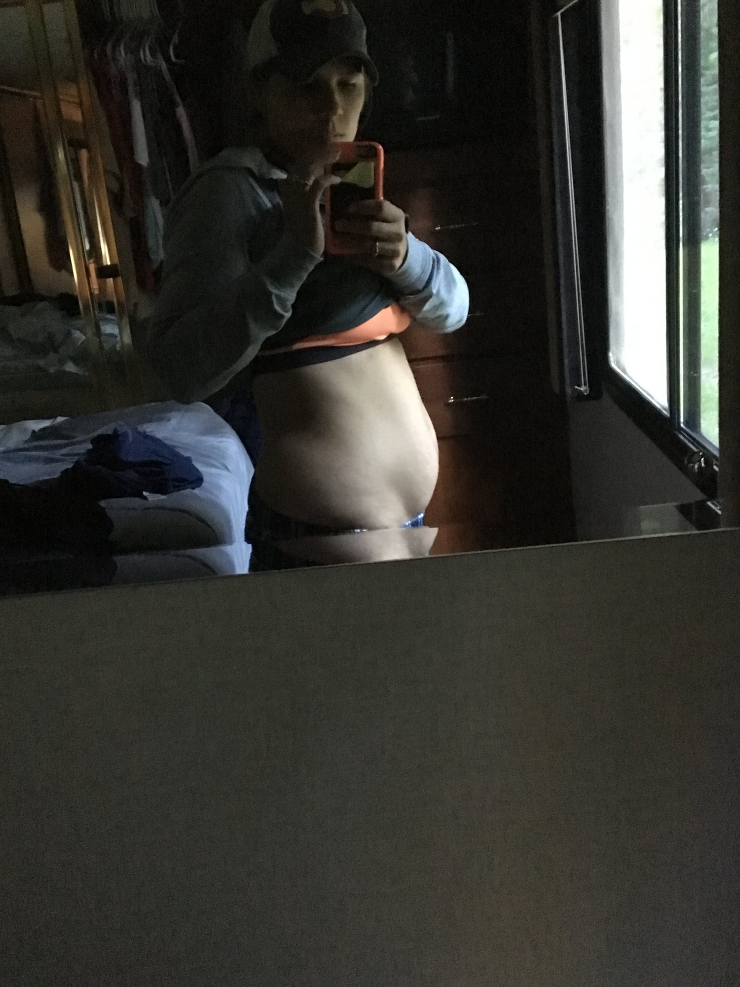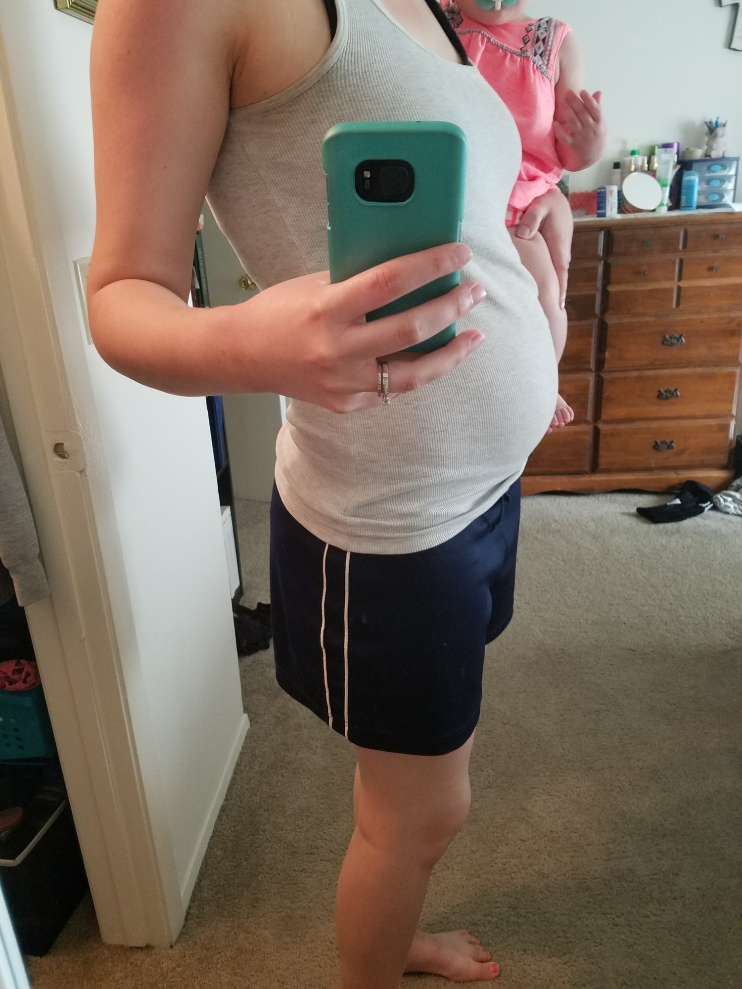 I do not have a "bump," but I am starting to feel like the lower lump of my stomach is starting to protude more as Wee Magikarp continues growing in there. This may also be the first one where I'm wearing pants, lol.