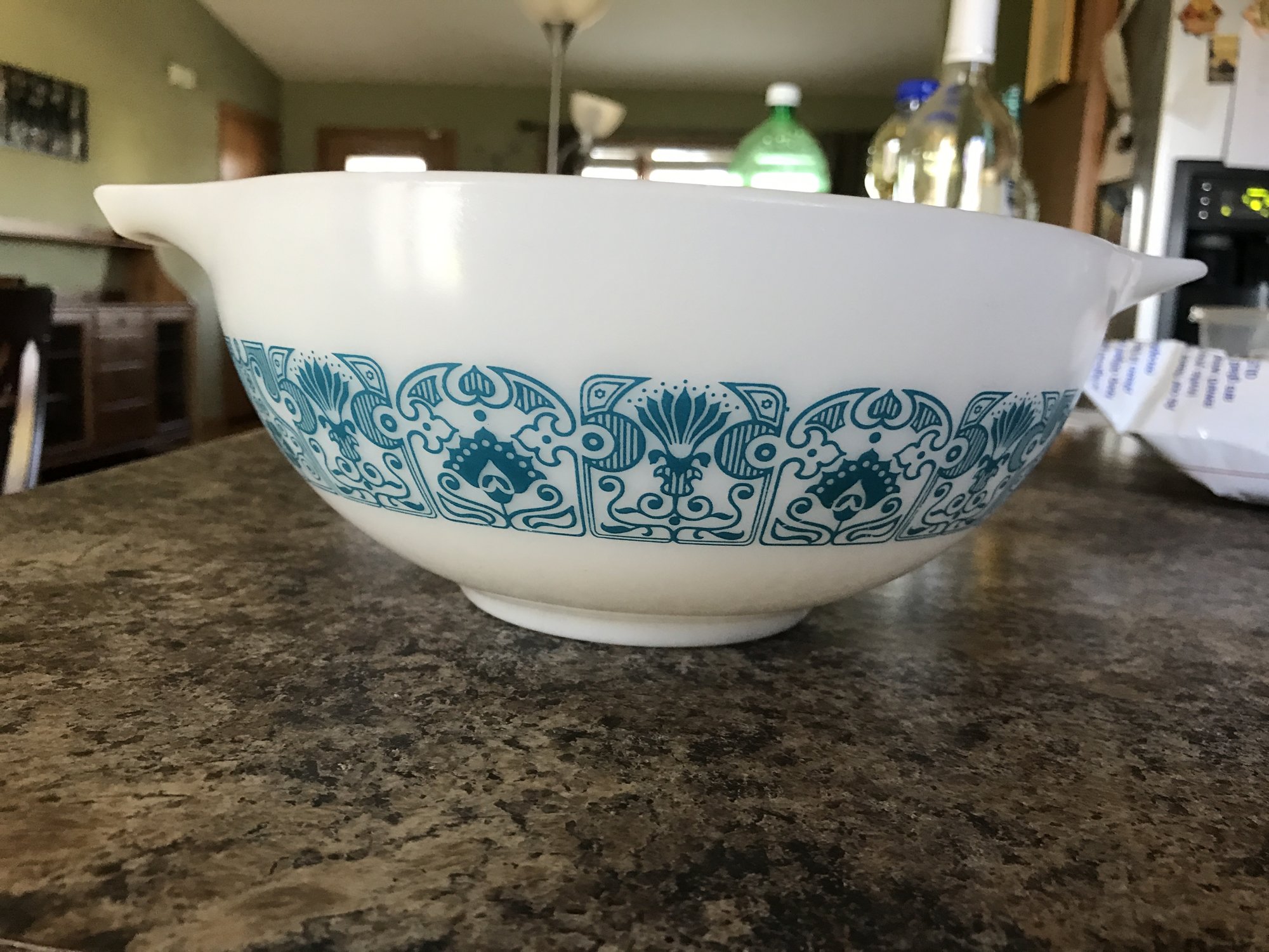@pebbledam I got more Pyrex! DH is sooooo thrilled. I feel like I did good though. I limited it to one piece and the actual dealer was there and marked it down to $14 for me. The pattern is Horizon Blue which is the commemorative pattern for the moon landing.