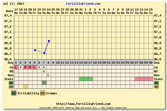 @izza2 I can definitely see a temp shift at CD9. You're right it's not a huge shift but it is something! I wonder is FF is withholding crosshairs because you had fertile CM past the shift? I think the convention they use is it should dry up or switch to less fertile after O? Hopefully vaginal temping will help see a more clear shift (if this isn't your cycle).