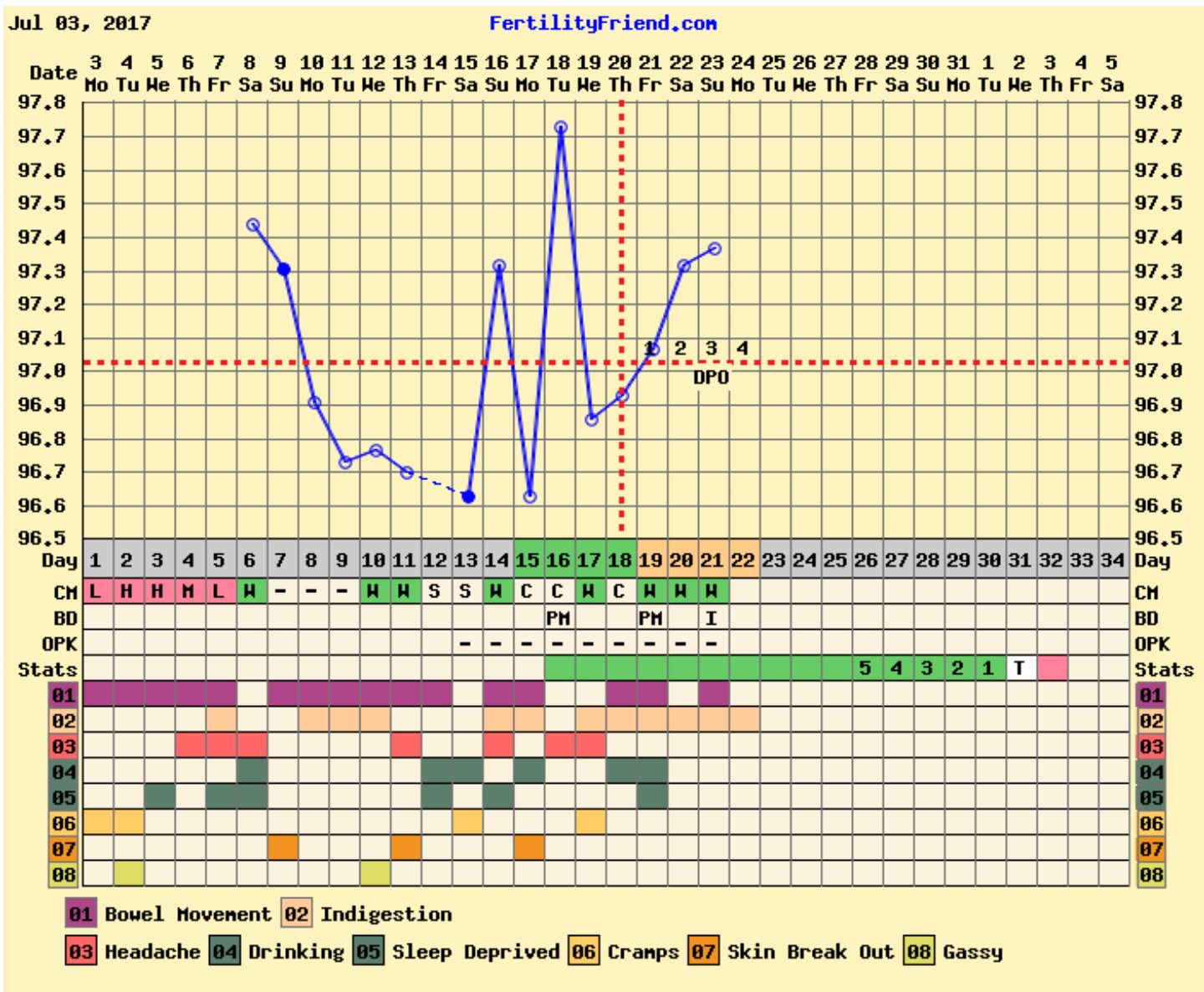 CS/Q: was doing very well on my chart then had too much to drink, had a meltdown and missed a day. My temp shoots up After I drink so ff Tried to give me crosshairs on day 13.... Nope no way that happened