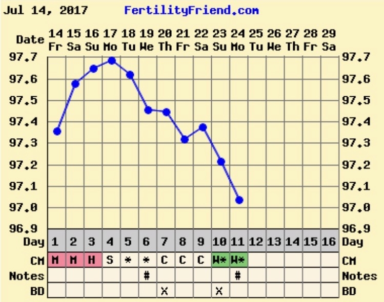 CS/Q: EWCM last night! Temp drop today. Promising, right??? I can't do OPKs because I have PCOS and get pretty much consistent positives.