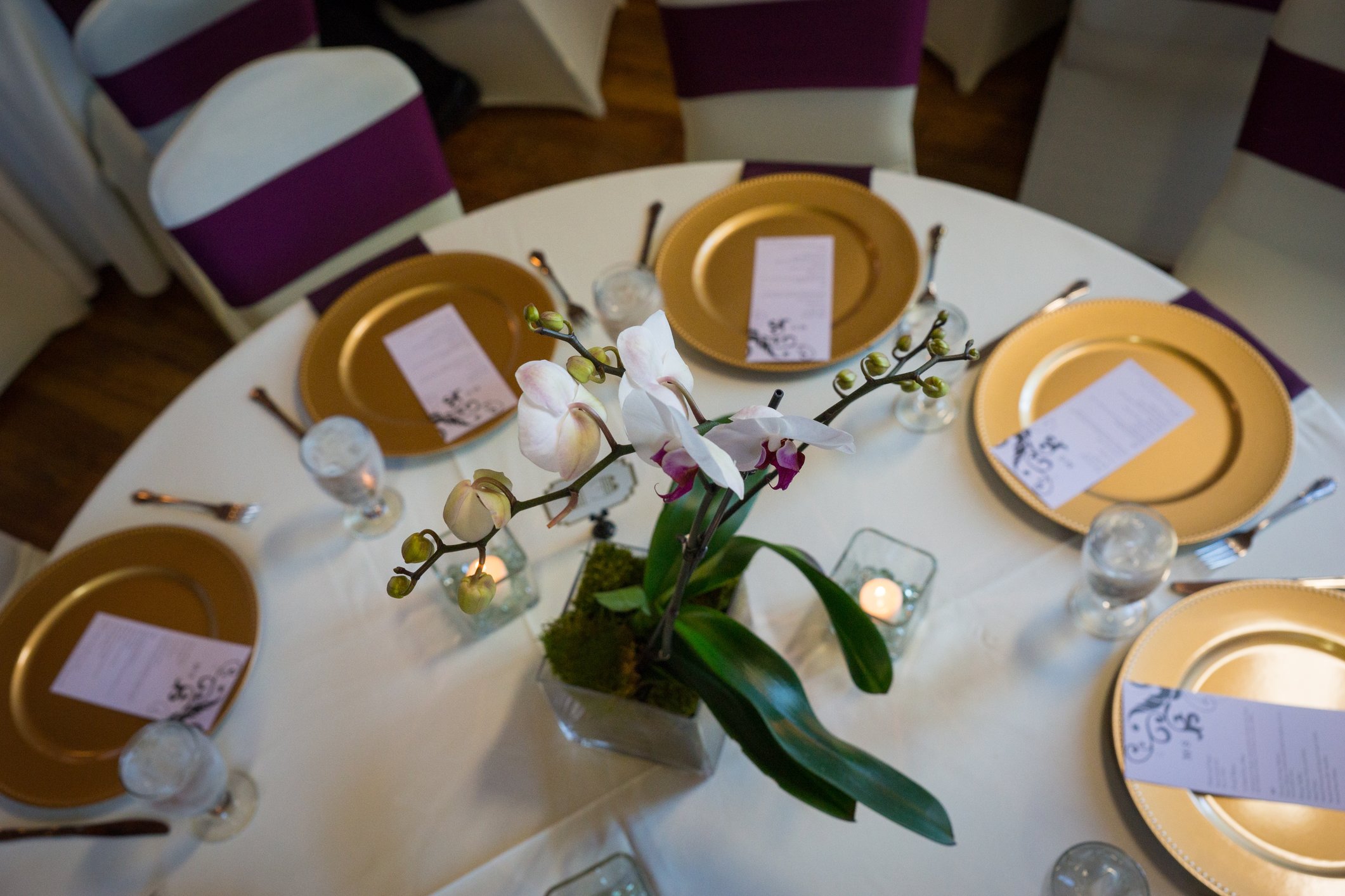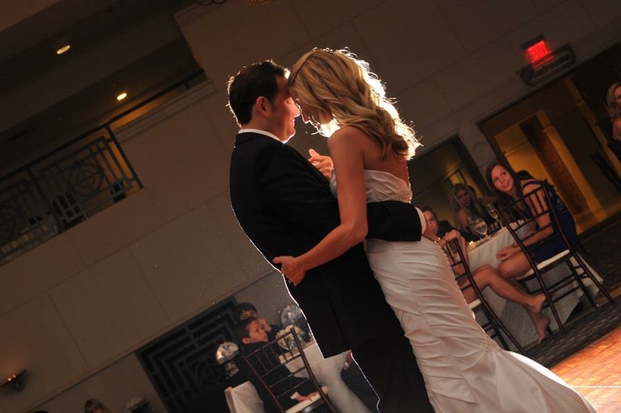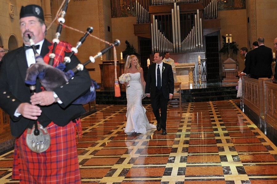 I really liked our room and the flowers. They were the perfect shade of lavender! I like this picture from our first dance and the way the light hits our faces. My husband wanted bagpipes for the wedding and I said no way, but then I surprised him with it as his wedding gift.