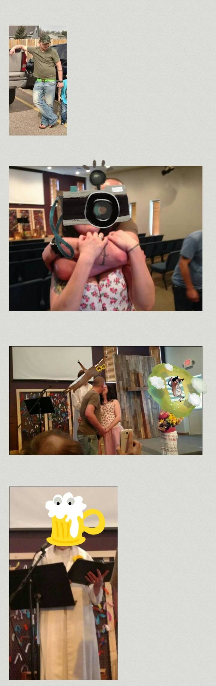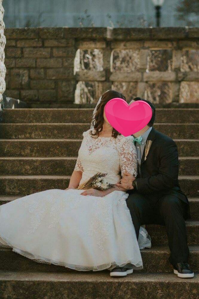 Okay, so we did a super nontraditional wedding and don't mind the silly stickers, just was trying to not blast faces around and that was the best I could do. Photo one is literally what DH wore. Jeans, t-shirt (he wanted a captain America one, that plain one was a compromise), and flip flops. Also, he just had to remove the hat off for the ceremony. Photo two don't mind the Ta-ta's lol. Not a great photo without our faces, but w/e, my favorite photo from that day . Photo three ewww kisses, but shows our flowers and my dress and my "sister" was my maid of honor. And photo four, my MIL is an ordained minister and performed our ceremony. It was super special and funny and amazing. If we could redo the one this I'd do different is have more photos. I love the memories and photos we do have, imo we wanted more focus on our marriage, and less on the wedding. The wedding is only one day of our lives. It turned out exactly how we wanted and was very "us". And I love all your pretty pictures!!!