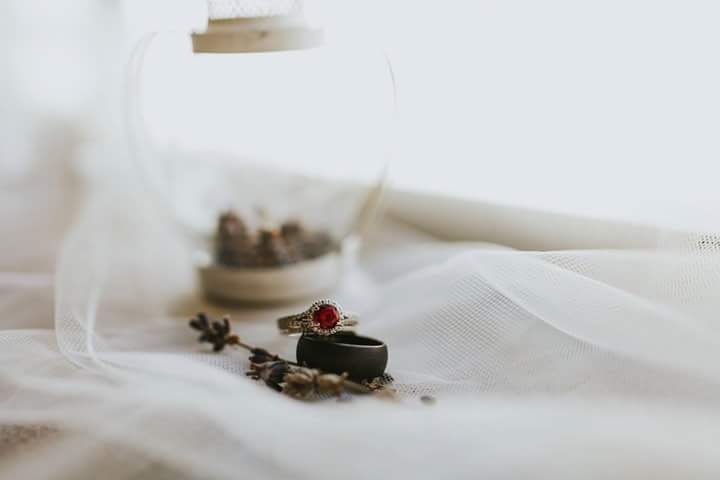 @mileswithmyles I love you ring! I'm a sapphire ring gal too. I also love the ring photo. My photographer was great, but we got married in a museum, and she decided to set the rings on these antique electrical caps that were on display - they look like giant glass dicks. She realized it as soon as we looked back and was horrified.