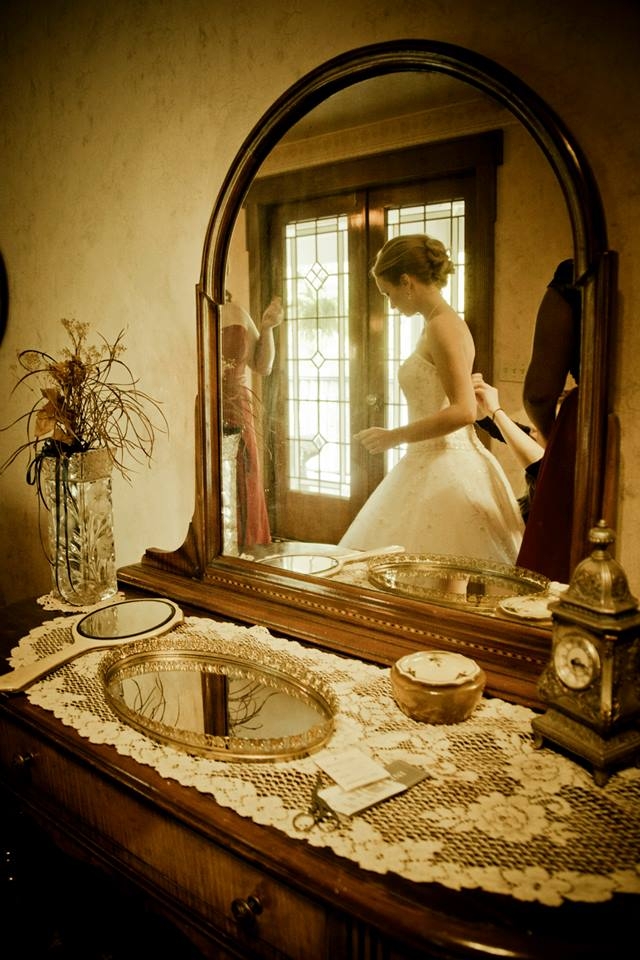 I love looking at everyone's photos! Our wedding was in late October, and we were afraid that the leaves would drop, but they didn't (it was nice not to have bare trees in all of our photos). It was really cold though, so in half of my wedding photos, I'm wearing my jacket...black matches everything, right? The place we got married was an old historical section of town, so our venue had all of this old antiquey stuff, which meant we didn't have to decorate as much (we were on a budget for sure). I also got to wear the petticoat that's been in my family for over 100 years under my dress, and my H's grandmother's pearls.