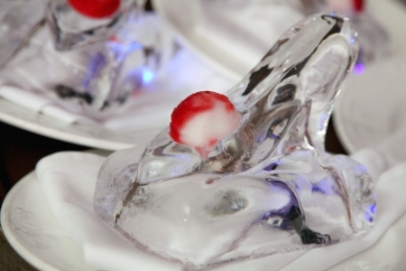 ~in between a course we had an ice Cinderellas glass slipper with sherbet. There was a light under to light it up (apparently that night my grandma freaked out in her hotel room that it was going to catch on fire so she flushed it down the toilet lol)