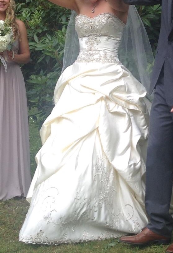 ~I had seen my dress several years before and fell in love but wouldn't jinx myself by trying it on or buying it. When we got engaged, it was still around. I tried on other dresses but it was still the one!