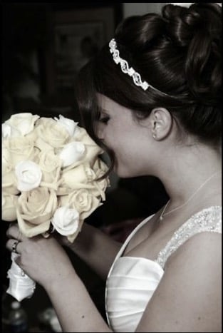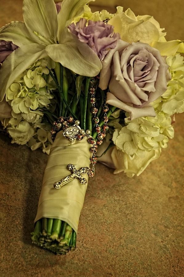 ~ my bouquet was messed up (wrong color of roses--they were purple/pinkish and were supposed to be lavender) but after we got pictures back, I'm glad for the mistake because they looked great in our centerpiece!
