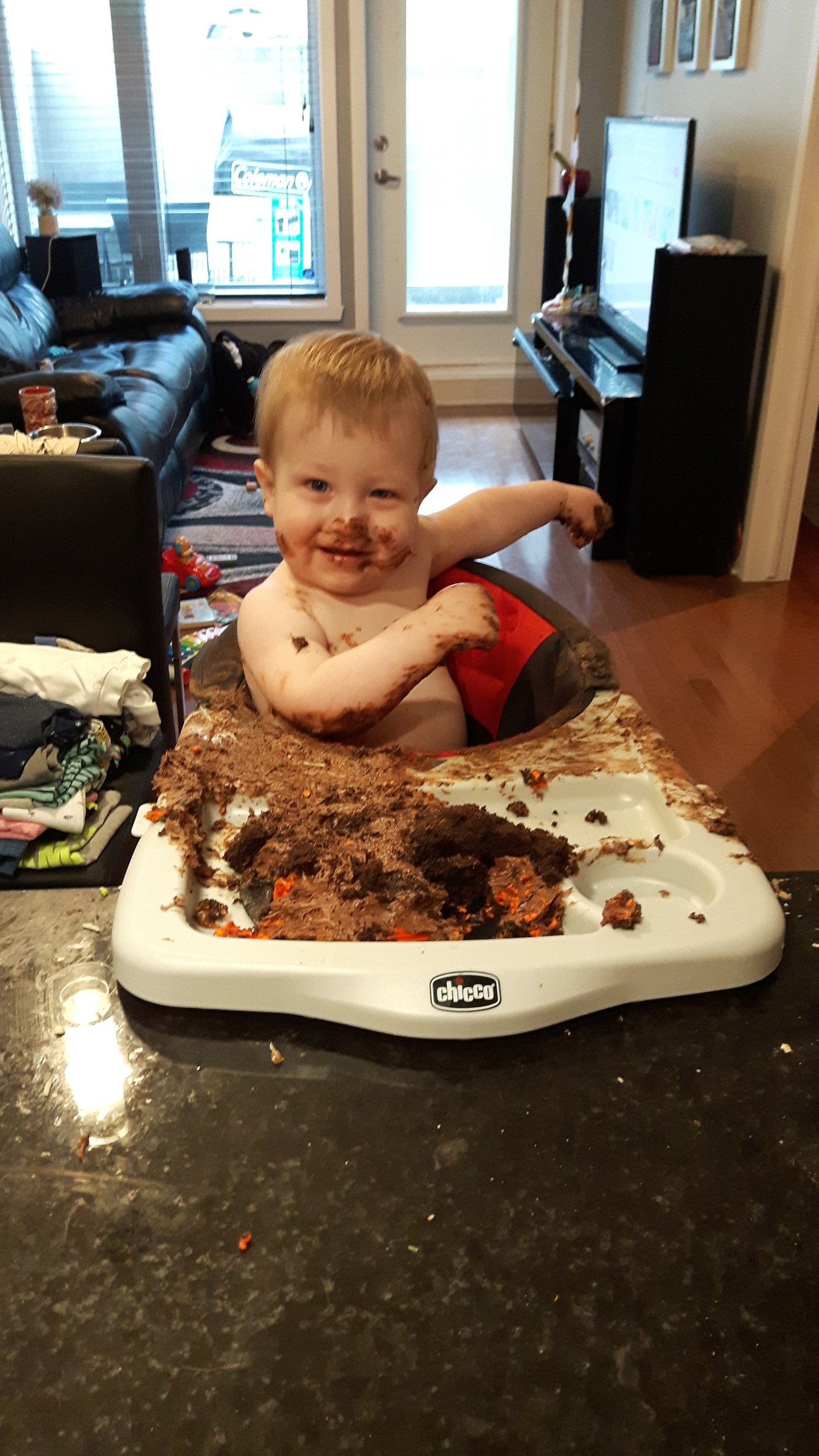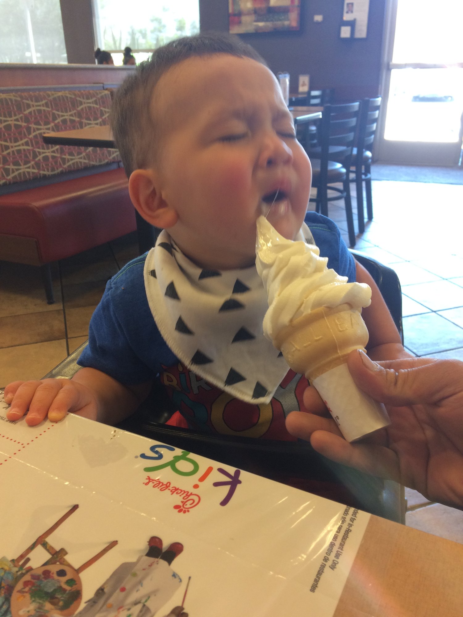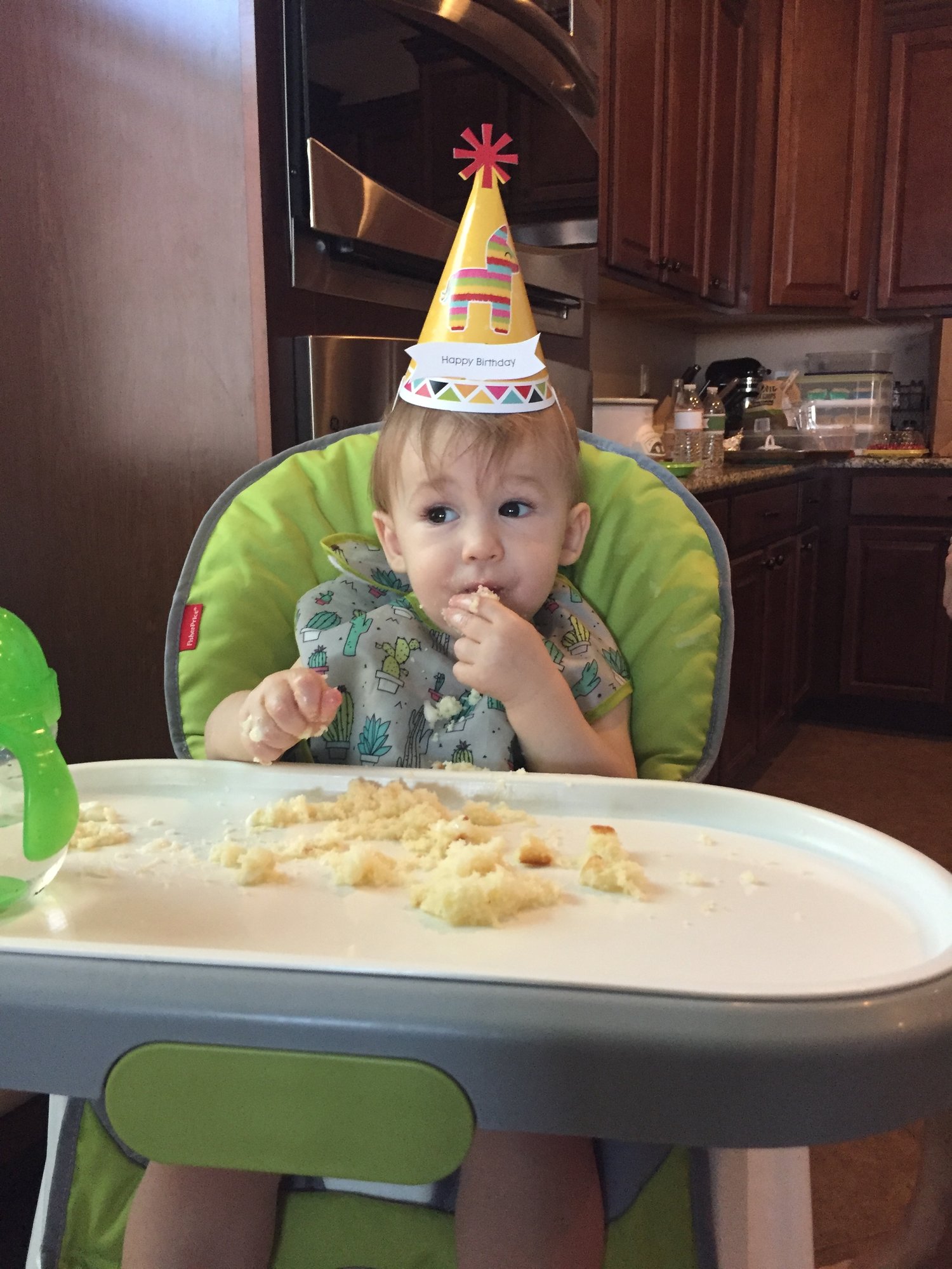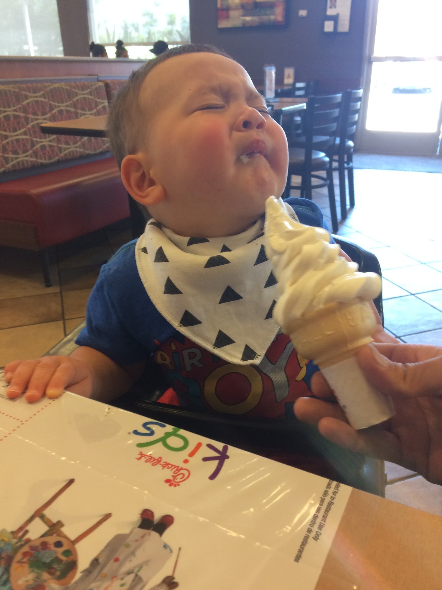 • Ethan turned 1 today!  Here he is enjoying some "healthy" cake my mom made (aka sugar free and gluten free lol). He also had his first taste of an ice cream cone. His face  :D