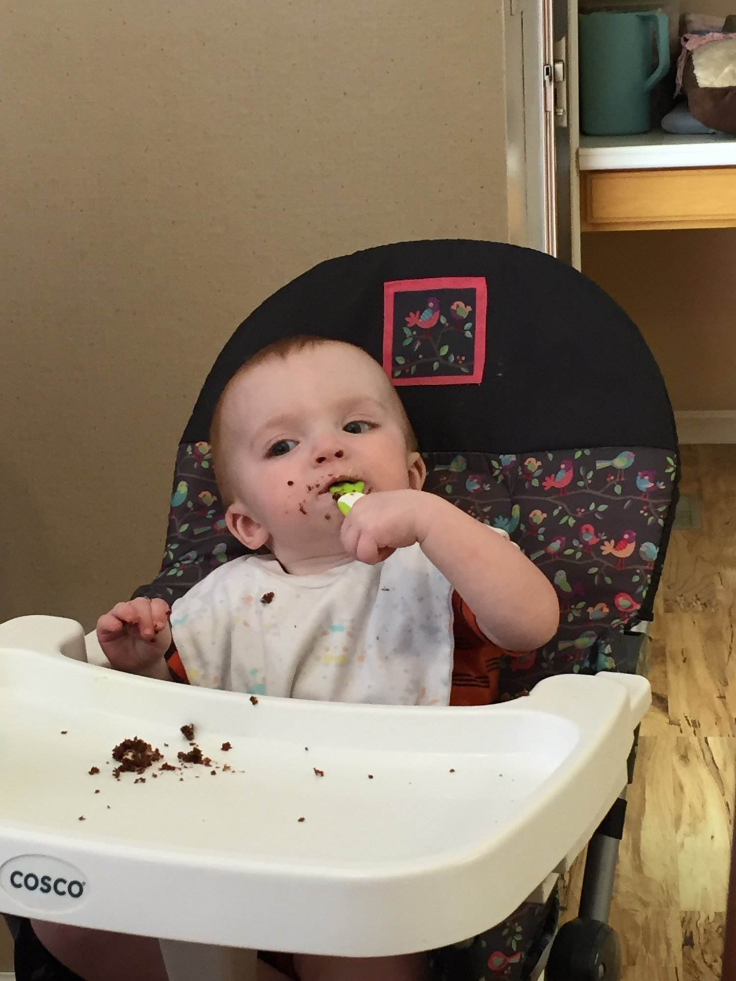 • Erin turned 1 this Monday and we just did a cupcake to celebrate but now she can get big kid food at daycare (she was grabbing food already from the 1 year olds for about a month on top of the meals I bring)