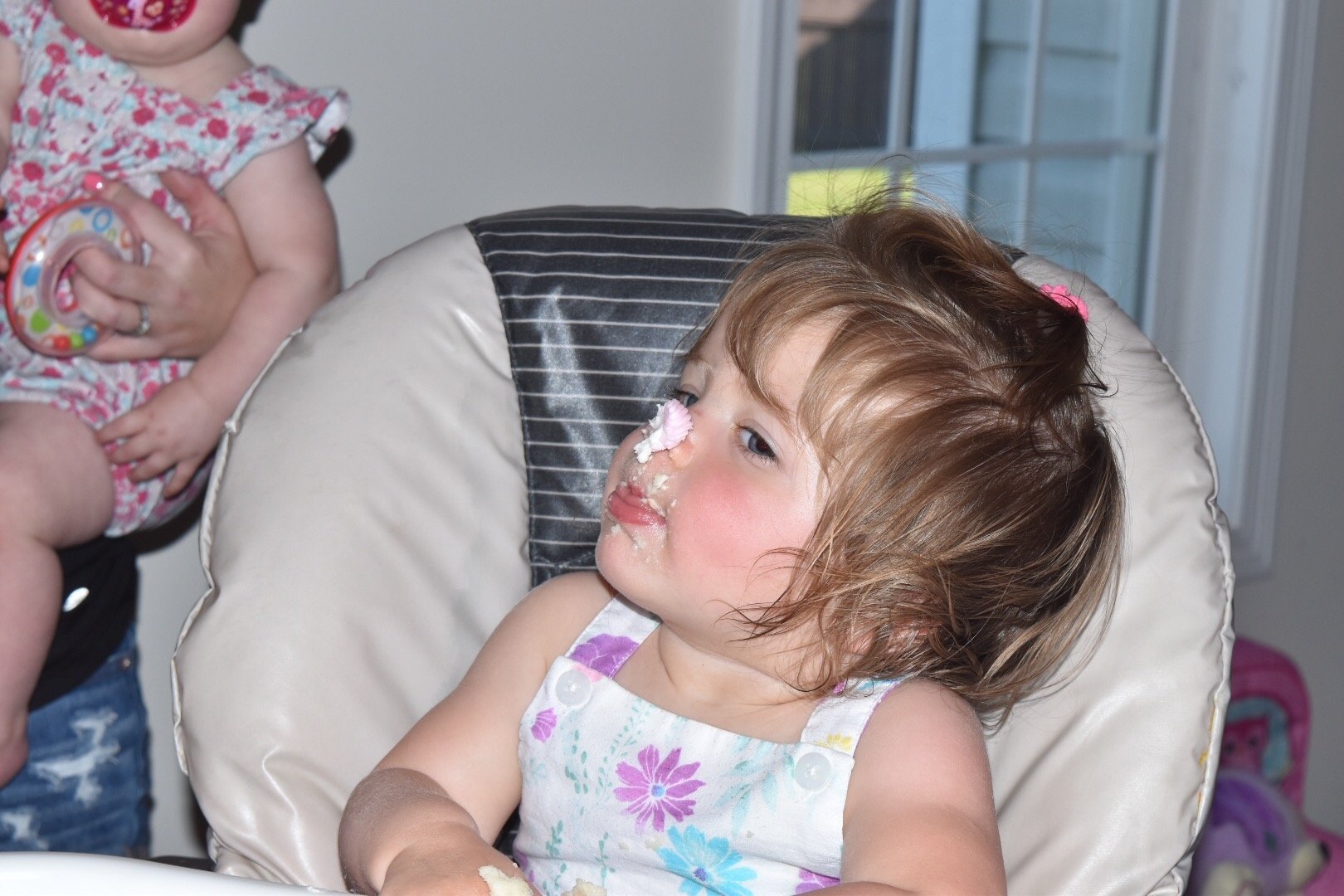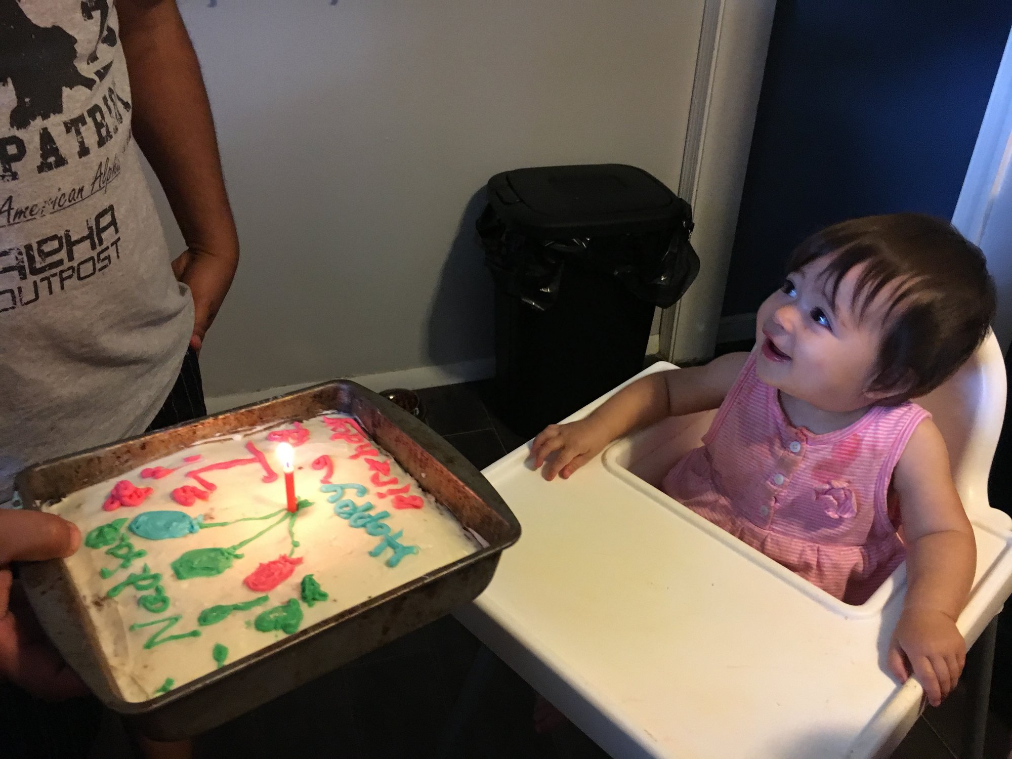 Last night I got her a big cupcake and we went to the choir party for church (DH sings). The whole party sang to her and they had a live musician with a guitar which was great. LO must have Daddy's love for music because we stayed out so late (took a long time for the food to come out) and she was loving the party.
