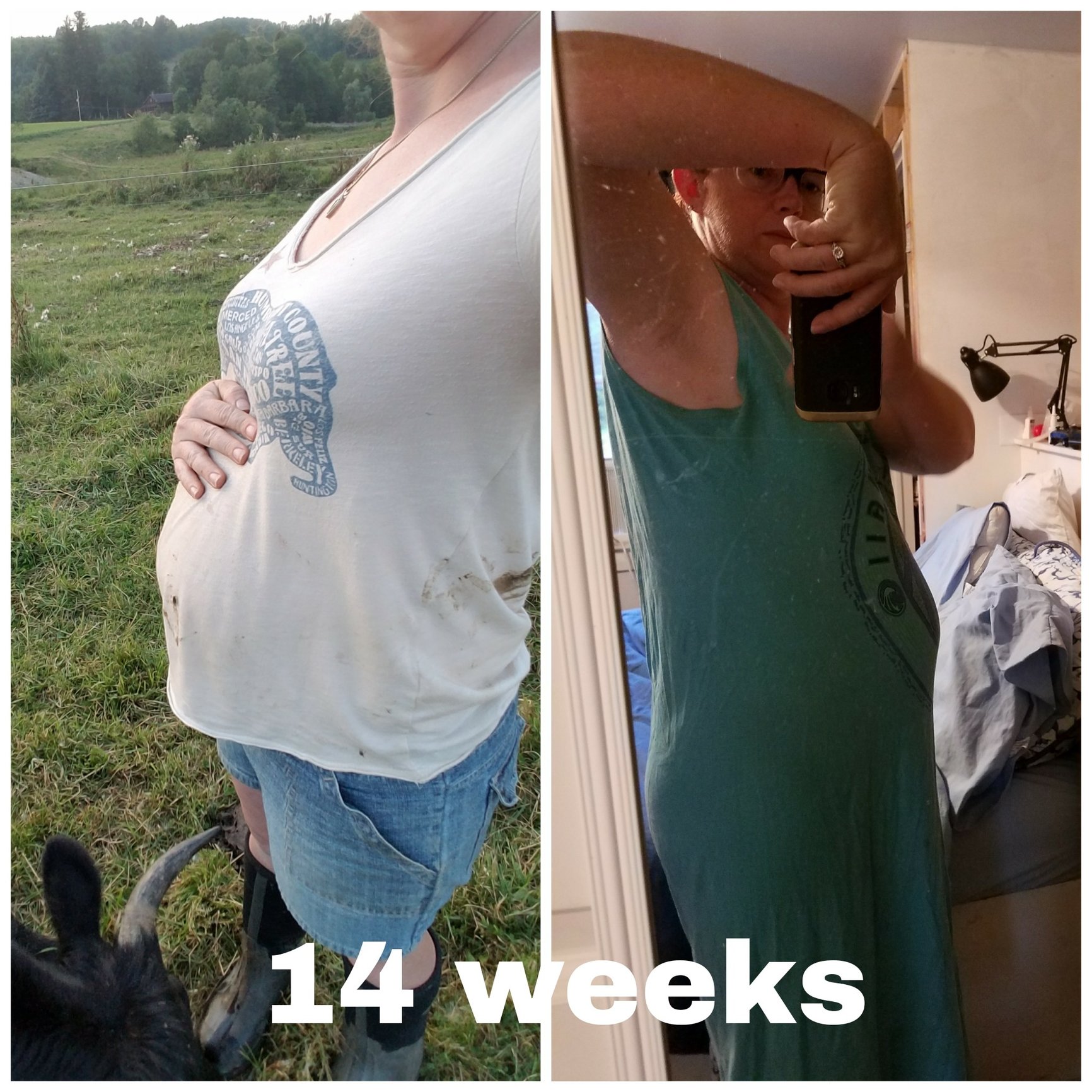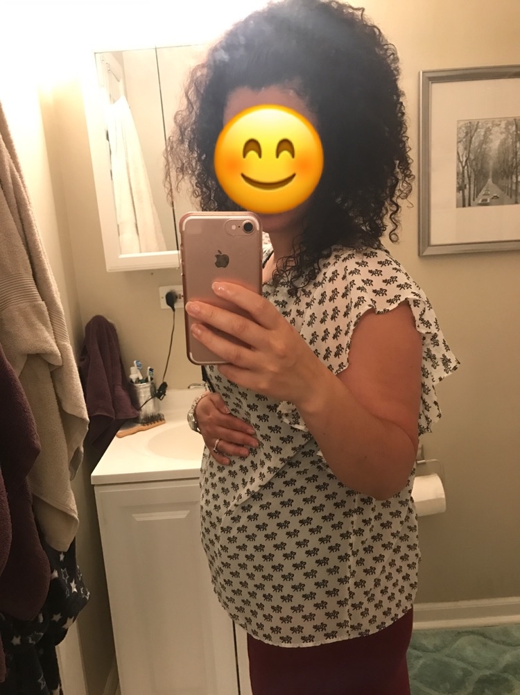 Was wearing my flowy work shirt yesterday and then looked in the mirror and realized I was still sort of showing. At least in my eyes! This is before breakfast too. Good thing I'm telling the rest of my work peeps Monday bc I feel like I'm sweating' trying to hide it. 14 weeks tomorrow, Ftm. :-)