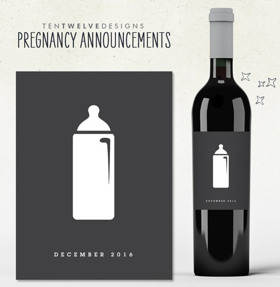 4. Rants, raves, questions? so excited that we're leaving to visit my family on Tuesday! I'm excited to (hopefully) have an ultrasound picture to take with since we'll be telling my family when we're there. I'm also using the following Etsy items for the reveal. Of course the wine label will say "April 2018." And, I have no idea why the card is pictured in a pile of trash lol: