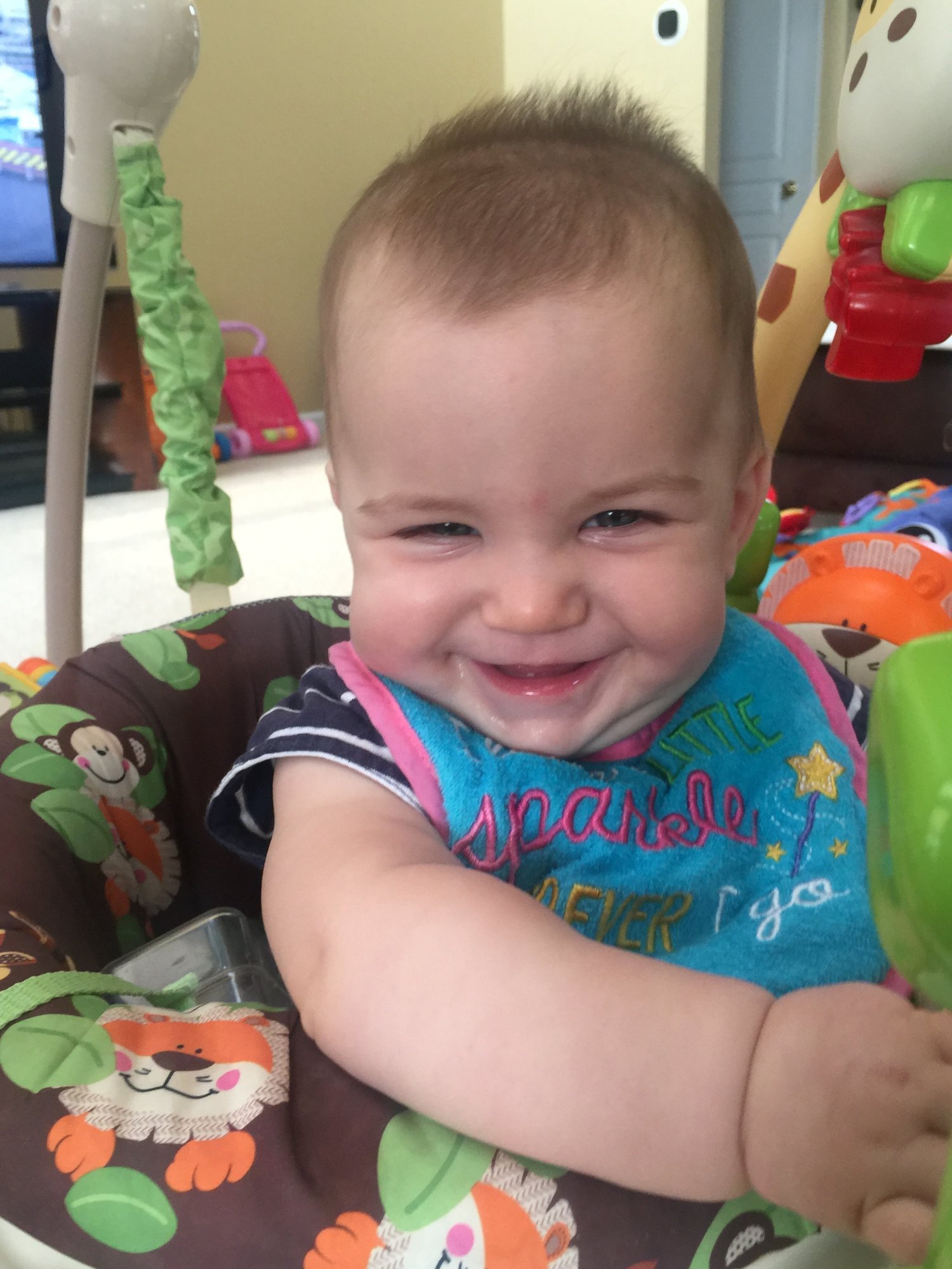 She is full of smiles and loves her play gym.