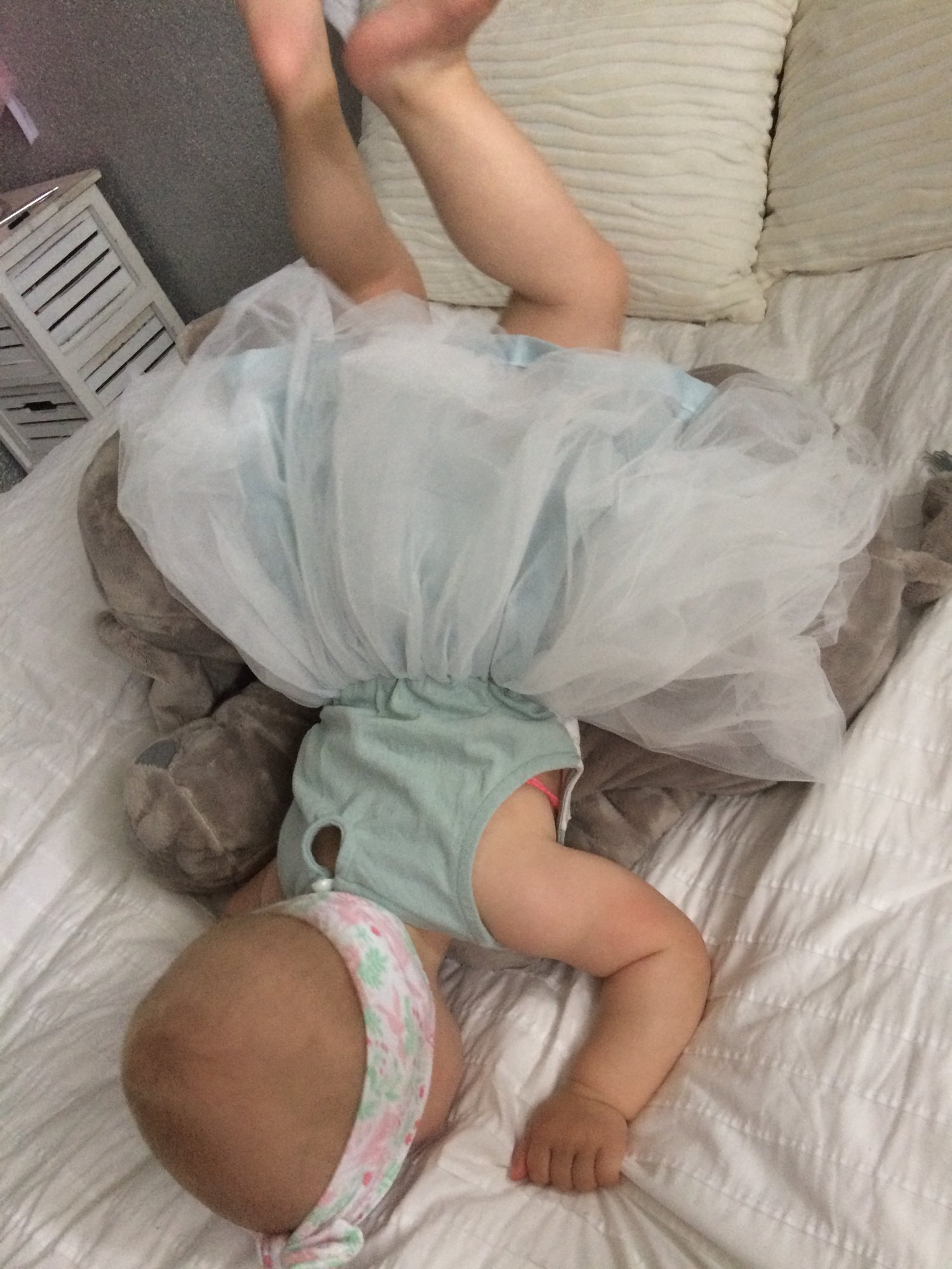 My LO is a whopping 9 months. She decided she's old enough to learn to walk and I'm just not ready for that!