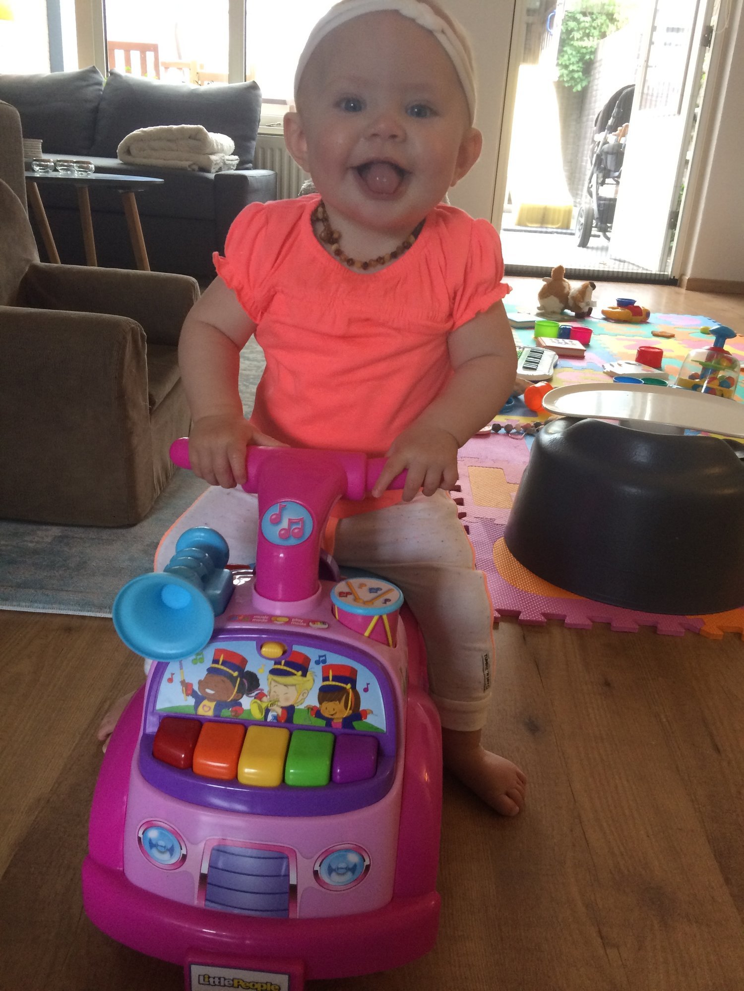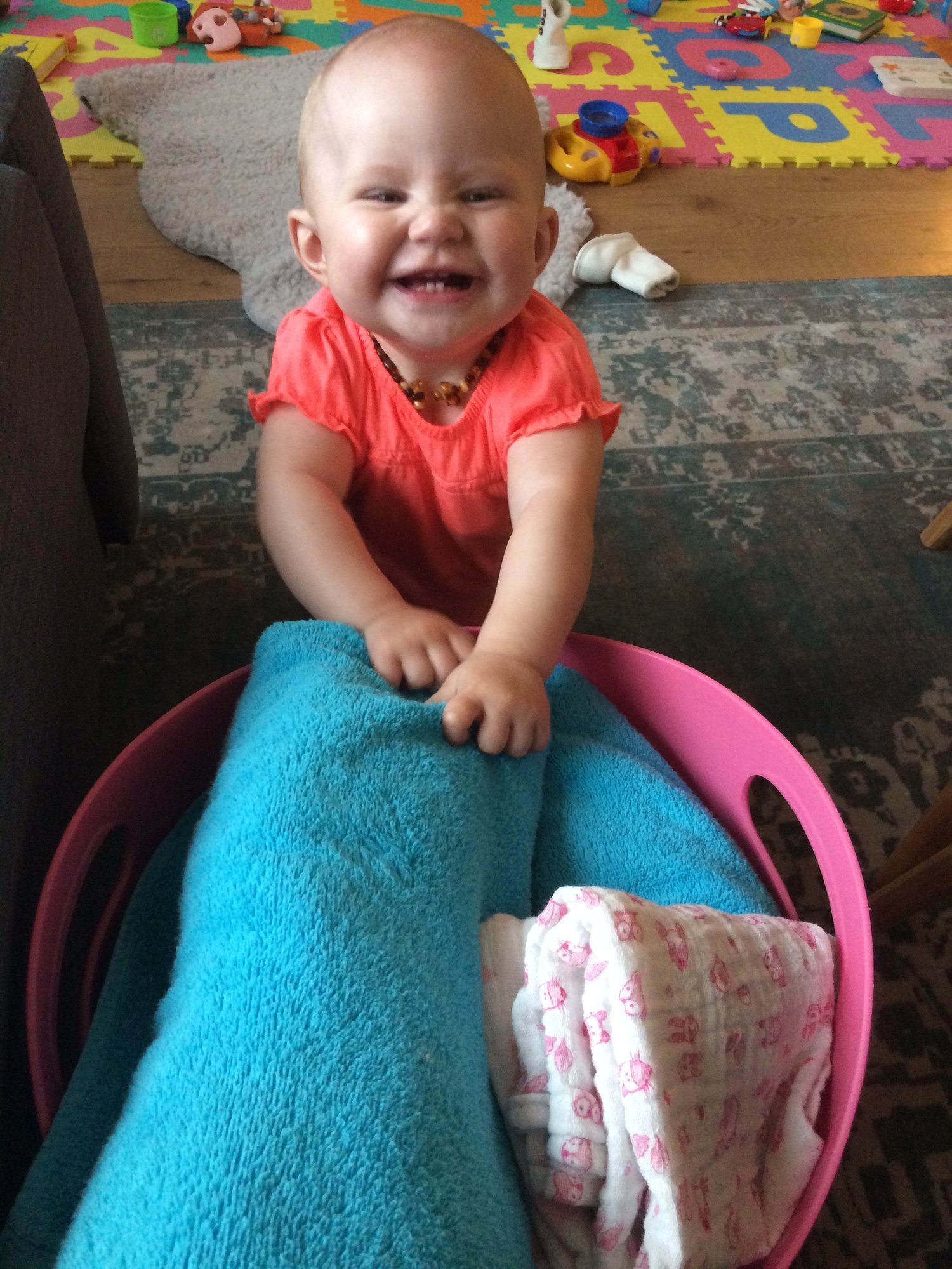 At 9 months they are old enough to help with chores, right? She also decided she's old enough to drive! Taking 9monrh old pictures of an active little girl is challenging! Oh go on then, I'll give you a proper one!