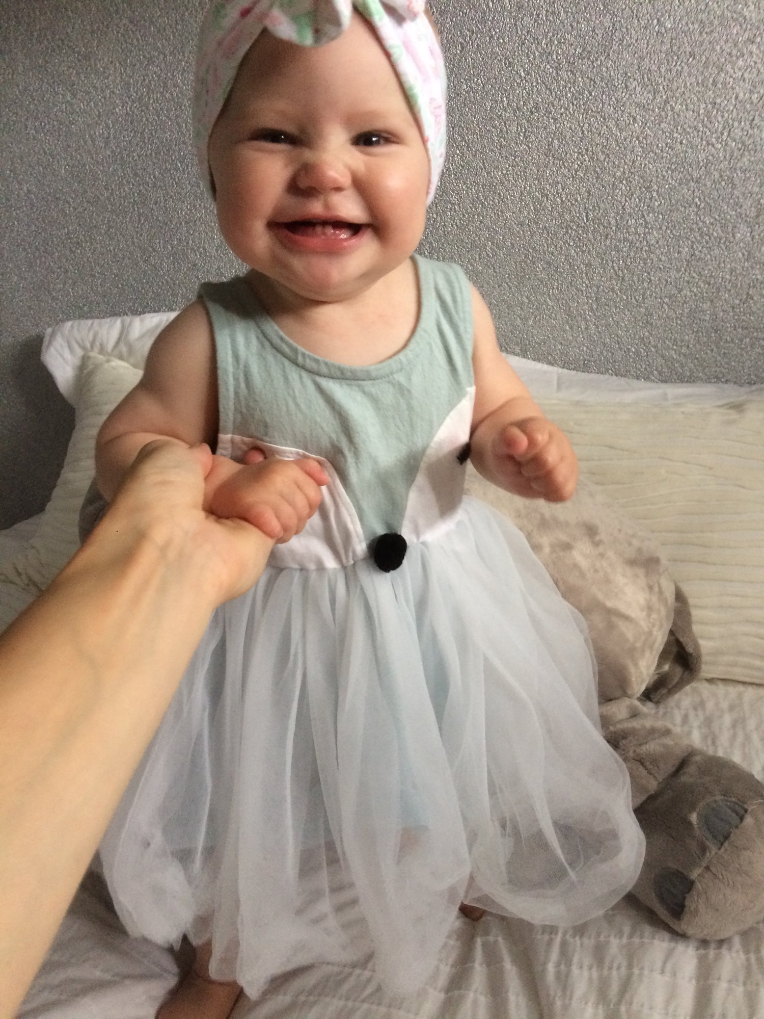 @colleen0516 how are YOUR little ones doing? My sweet little babe turned 7 months. My DH sad yesterday he wants to cut out formula and just get her on regular food (ps he just has no idea lol) and I told him she will be on formula no matter what until she's 1. He's like alright so another 4-5 months. Wait. What?? I can't believe she will be 1 so soon already. It's really going by so fast. So we've been taking her out since she's been like a month old if not sooner. Stores, parties, weekend getaways etc. we were away this weekend at a festival and she would pretty much cry every time someone looked at her. Wth?? She's never done this before. She usually smiles at everyone. I mean maybe it was just mood but I hope it's not a habit.
