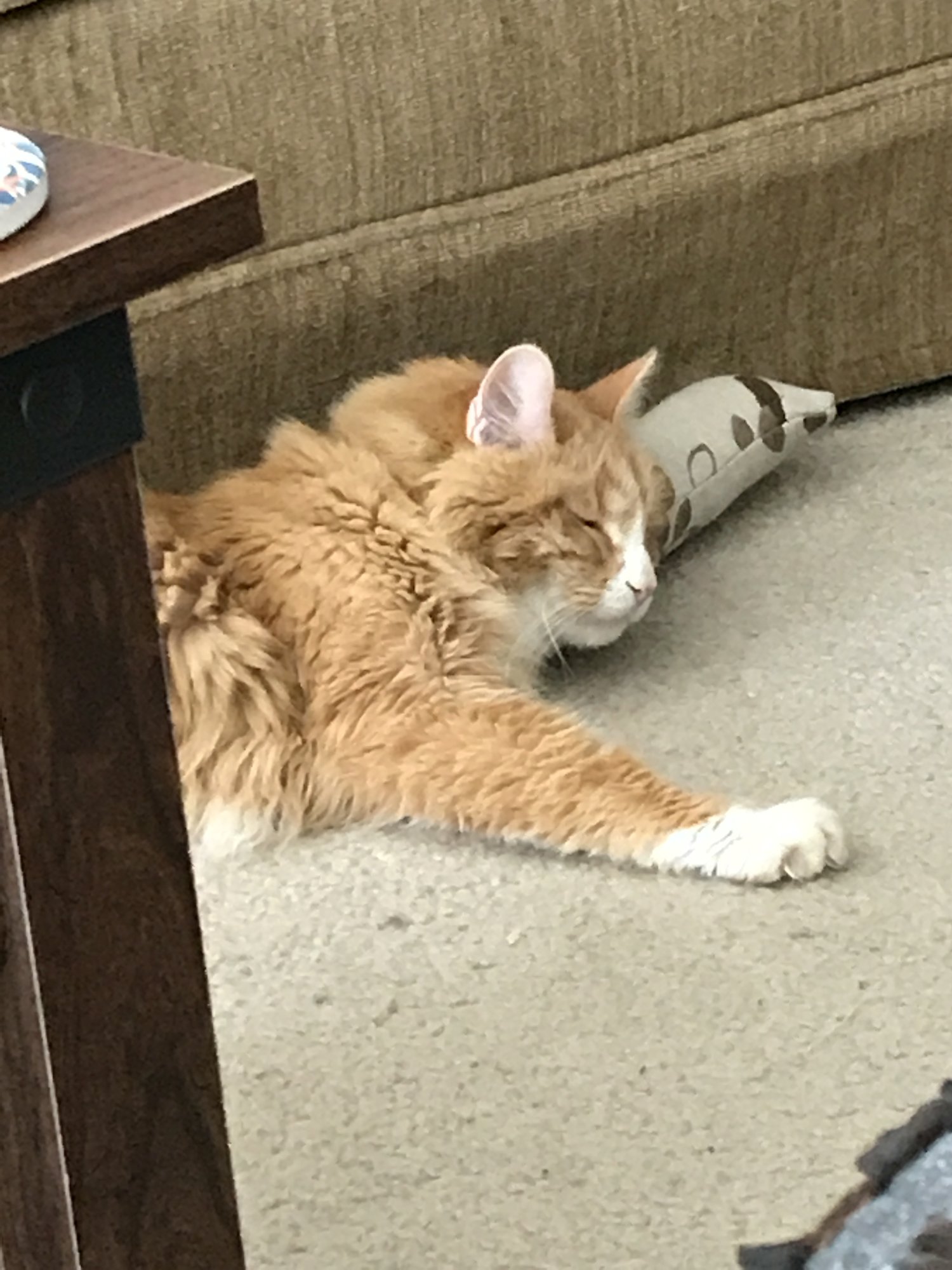 Thanks to all who asked about my kitty. He's gotten super skinny thanks to tummy problems, but we've got him on a new medication that seems to be helping a lot. This was the follow up appointment and the vet confirmed that he's gaining weight back at a good rate!
