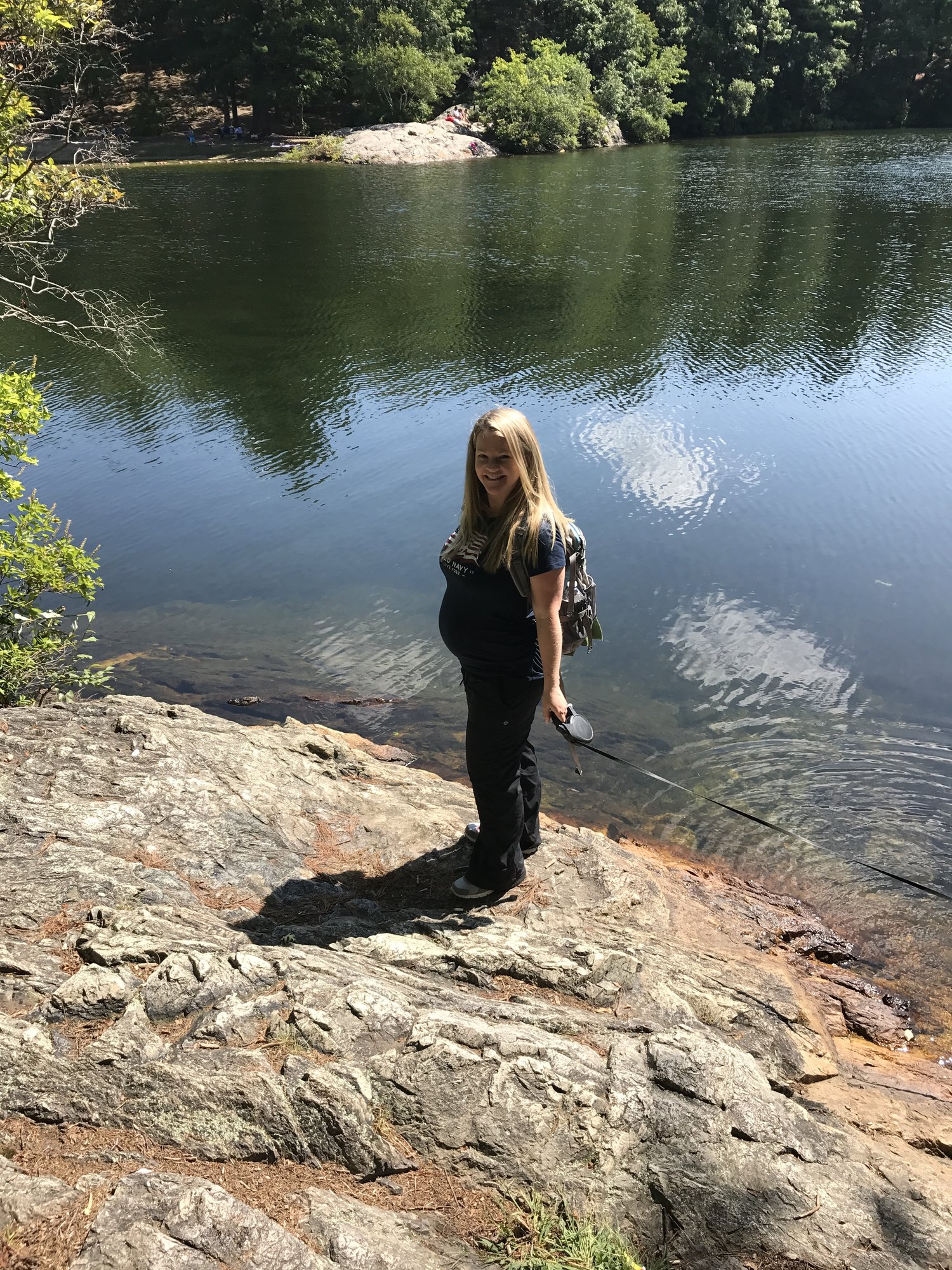 Everyone looks awesome!!! Here I am over the weekend hiking with DH and our dog (who is sadly out of the frame because she was drinking the lake water haha). This is me at 25 weeks and 4 days - FTM.