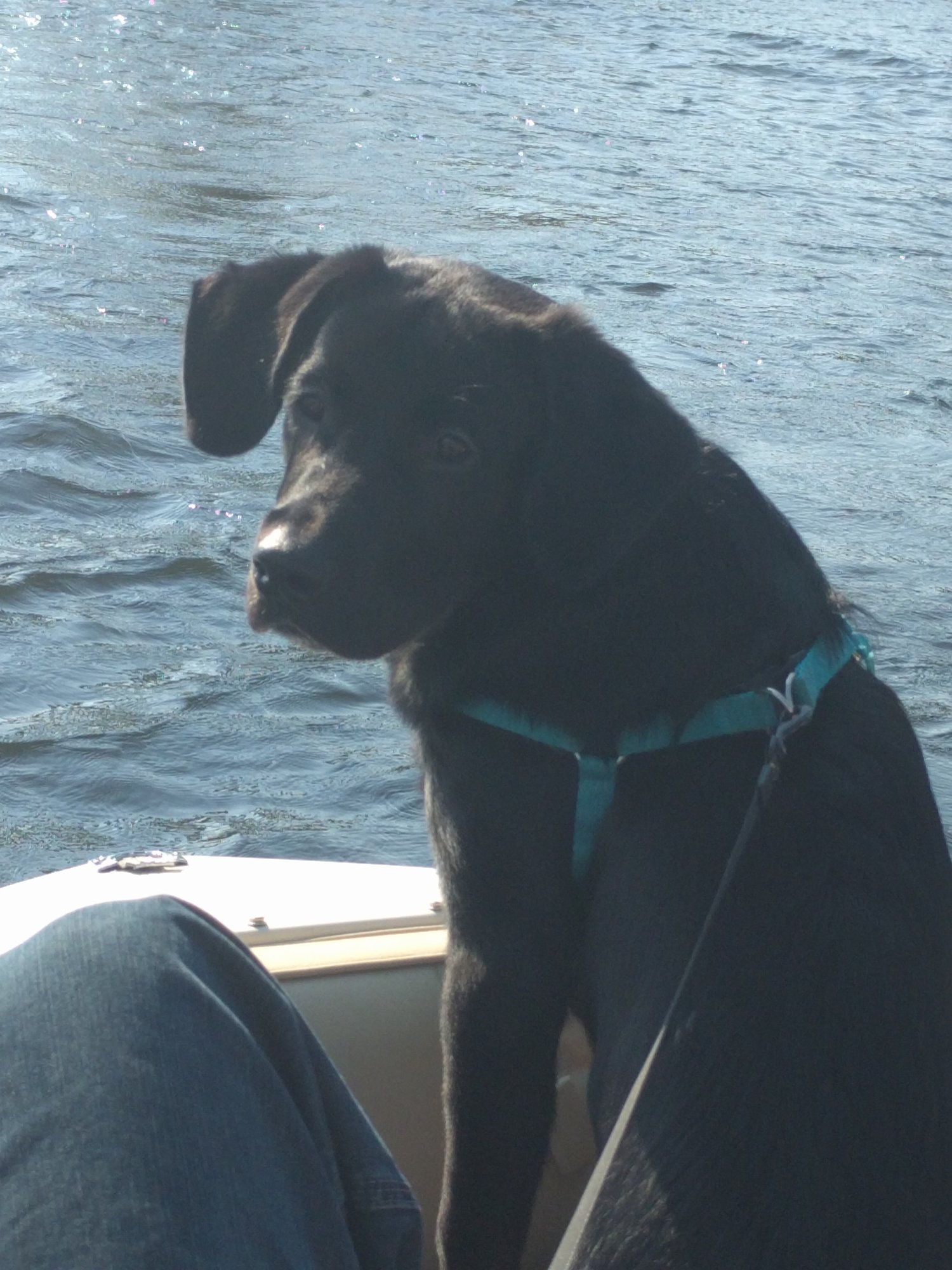 We spent the weekend with the in-laws. They work at a marina, so we got to take a boat out this afternoon when their shifts were over. We took Burnie, our 6 month old puppy, on his first boat ride. It was a really nice day.