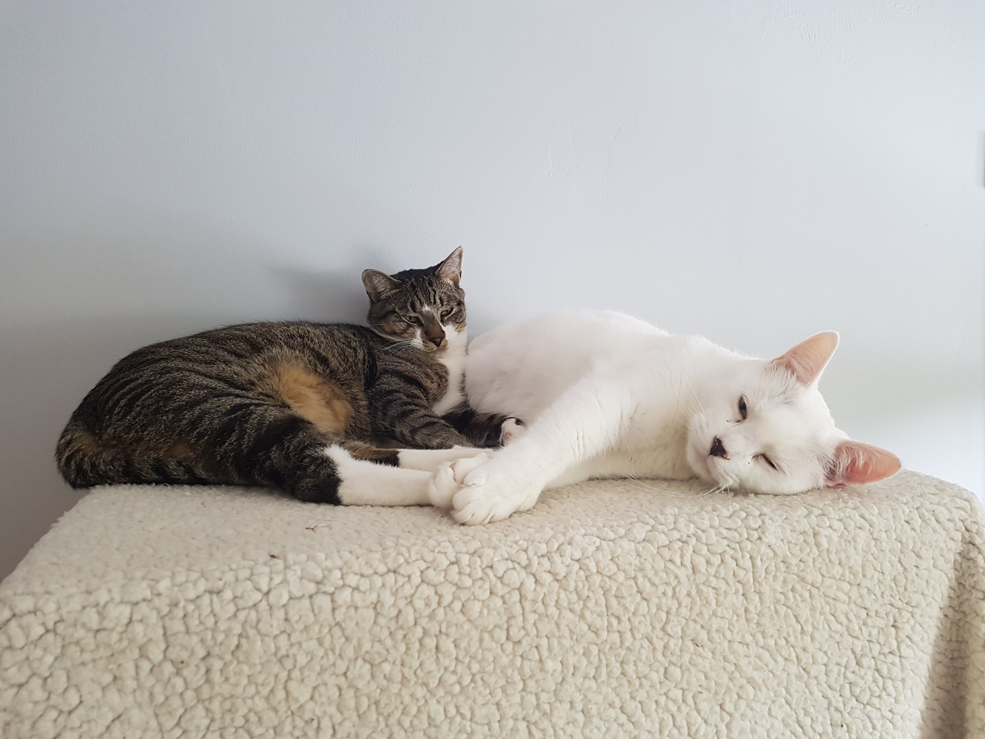 Here's my 2 furballs. (Working from home with cats is never easy )