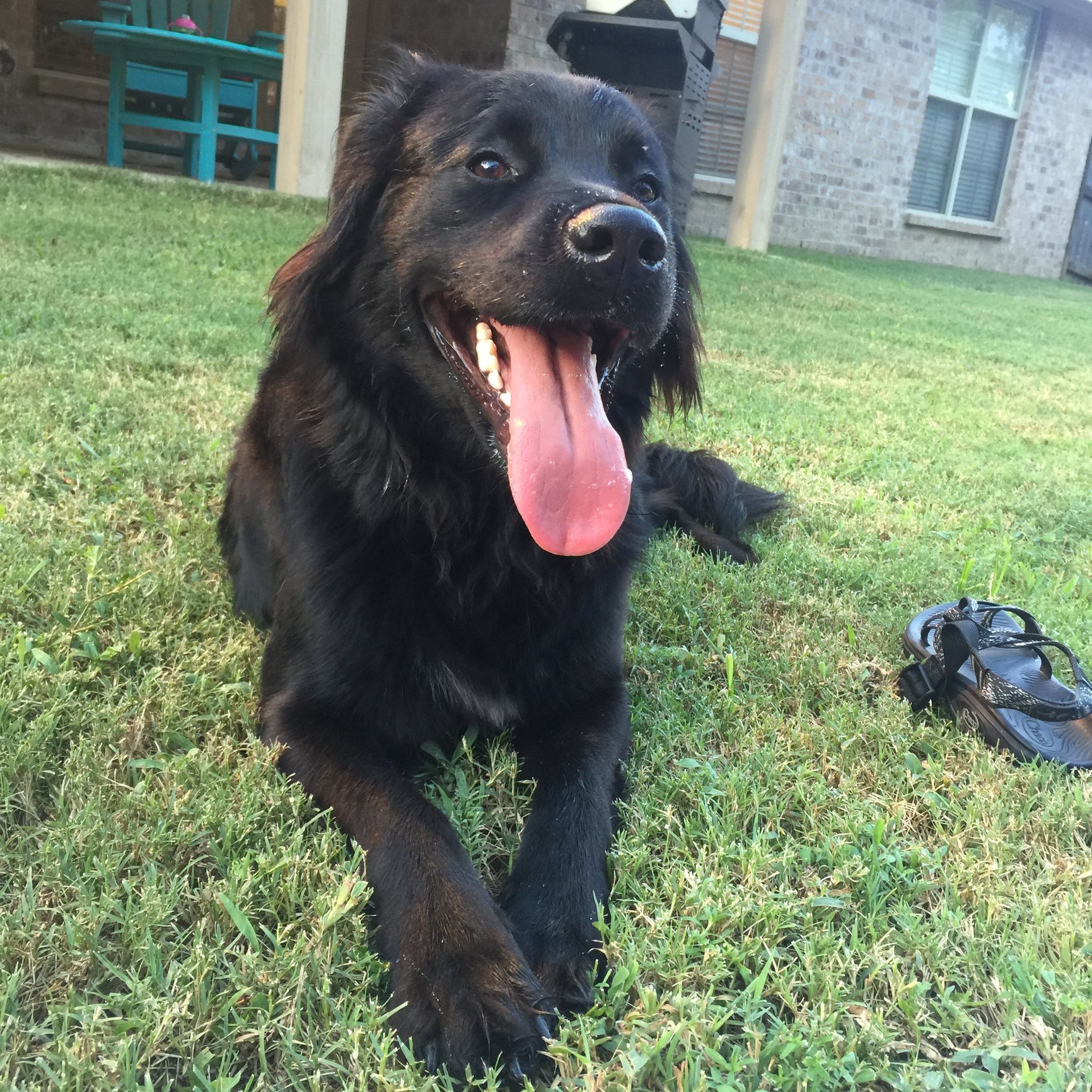 Romeo!!!! He's a German Shepherd Corgi mix. About 2 ft tall, 4ft long and 90lb he thinks he's a water dog. I don't think he can swim so he's not allowed passed the shallows.