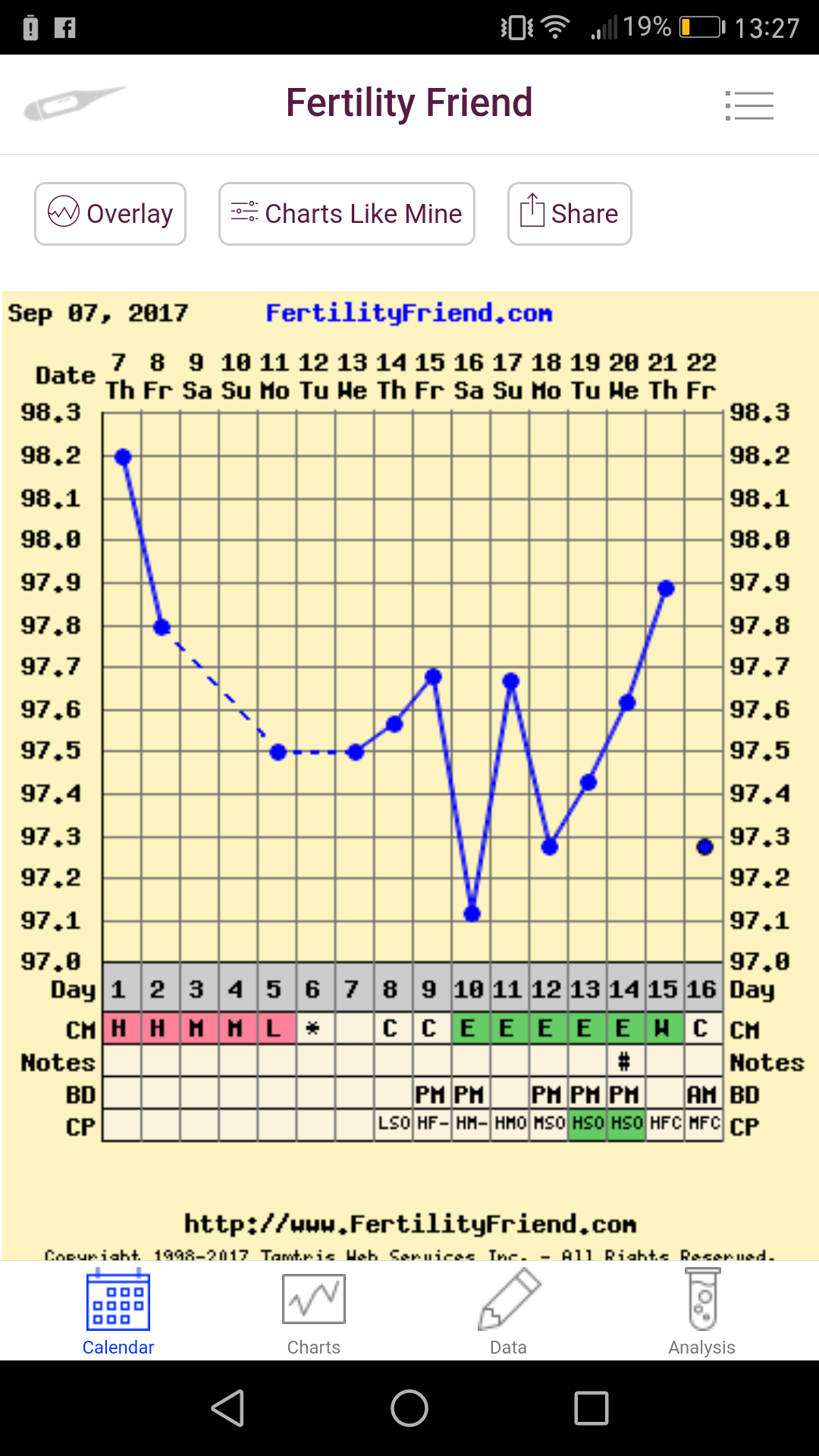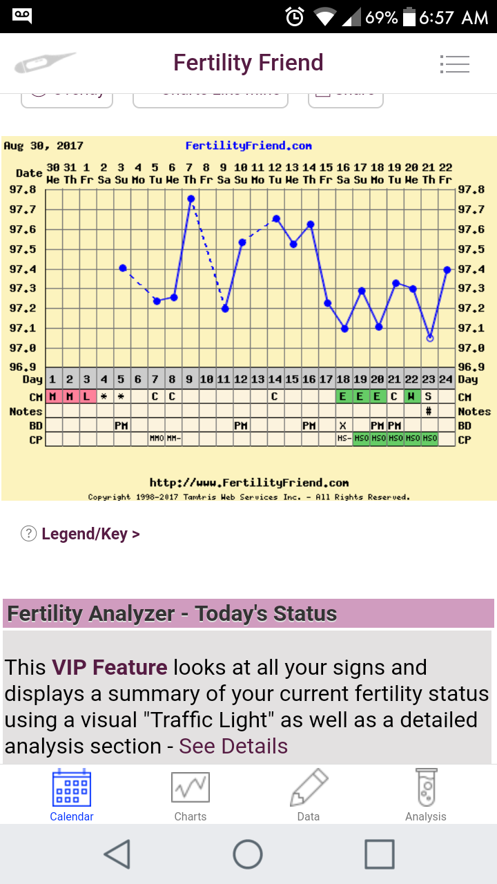 @krashke From your temps I don't think you have Od yet. Also as a rule of thumb you should chart your most fertile CM of the day, even if it isn't the most prominent. So if you saw EWCM yesterday I would chart that. You have awesome timing! Hope you are able to keep it up until you confirm O!