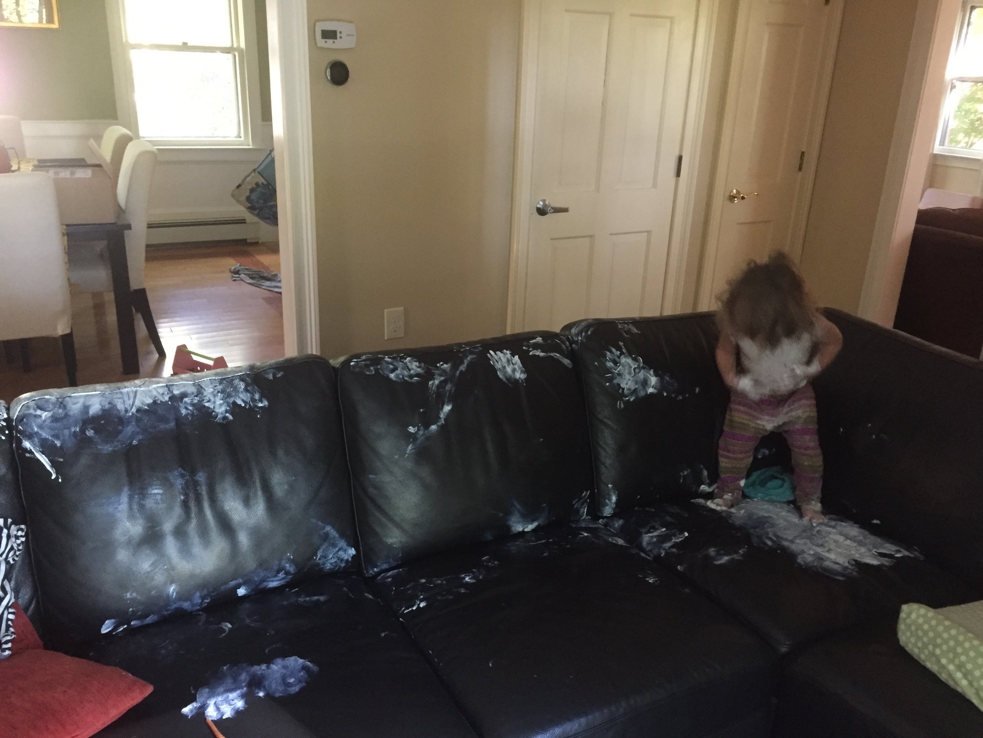 Terrible 2's saga continues. I dealt with this today for a few hours. That's super thick SPF 70 sunscreen that's impossible to get out. I don't know how she managed to do this while 10 feet away from me while I washed dishes. FTMs, this is what you get to look forward to! Haha