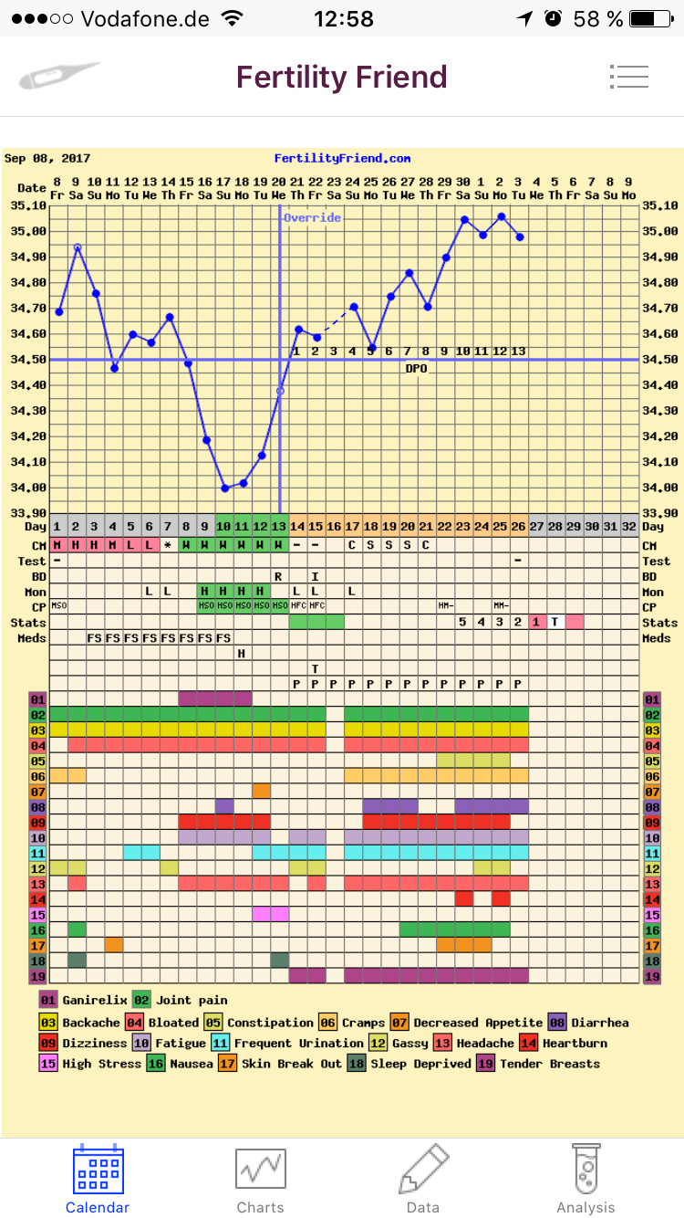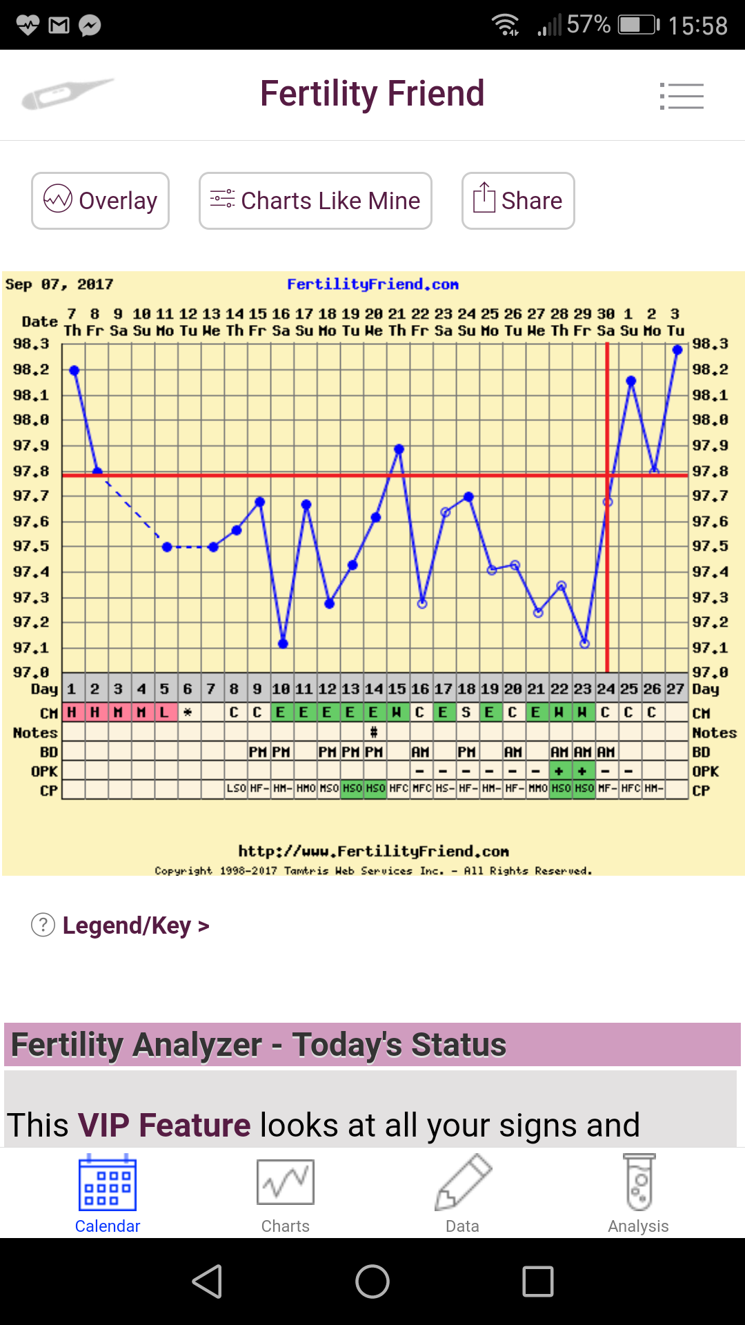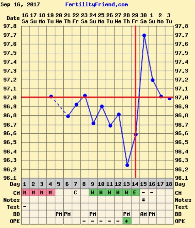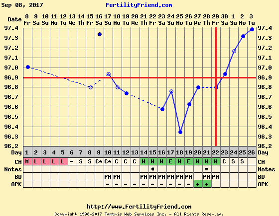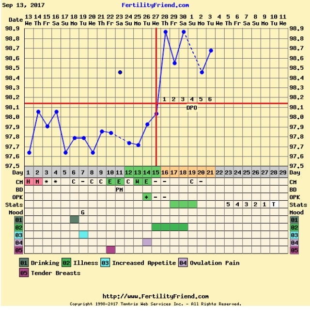 CS/Q: I emailed my ob/gyn to see what she thought about canceling our appointment and u/s and just waiting for the RE, and she agreed it made more sense to wait for the RE. So I need to officially cancel those appointments and get my paperwork in order for the RE on 10/17. For some reason this morning I started feeling like I'm out for this cycle. Maybe I'm just tired and grumpy. Chart in spoiler.