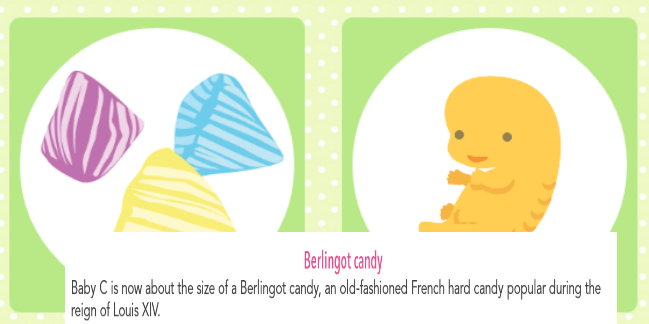 • @katie121209 I am using the Ovia app and I love that it had a choice for themes, so I went with Parisian Bakery...lol  Today I have a berlingot candy.  Hahahahhaha.  It also give a little information on the less known items it compares the baby to, which is really sweet!