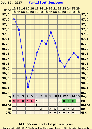 CS/Q: Still waiting for a positive OPK or temp increase. I used to O on day 13/14 so really hoping it's coming soon and it's not that I'm not ovulating at all anymore! Chart in Spoiler.