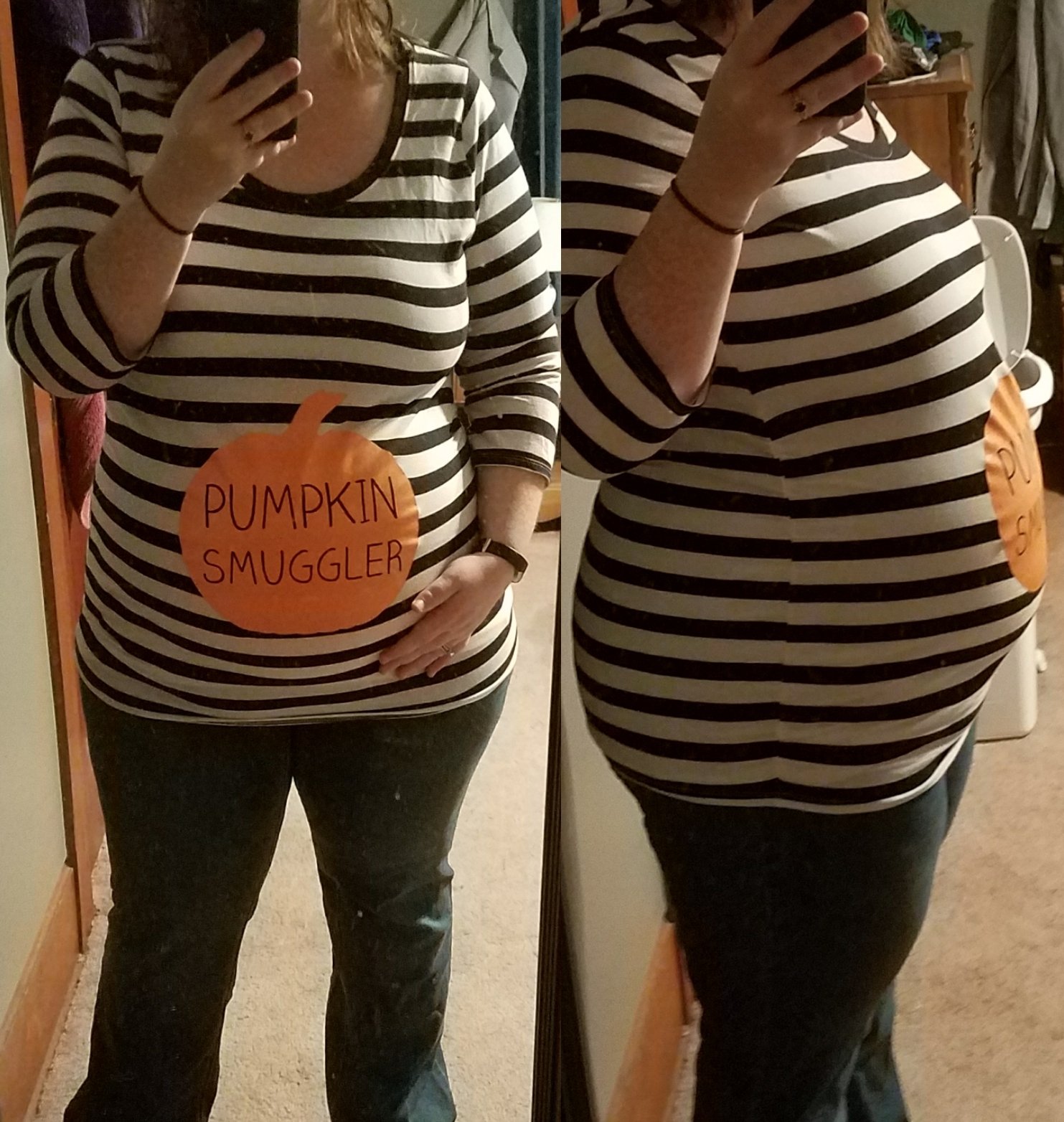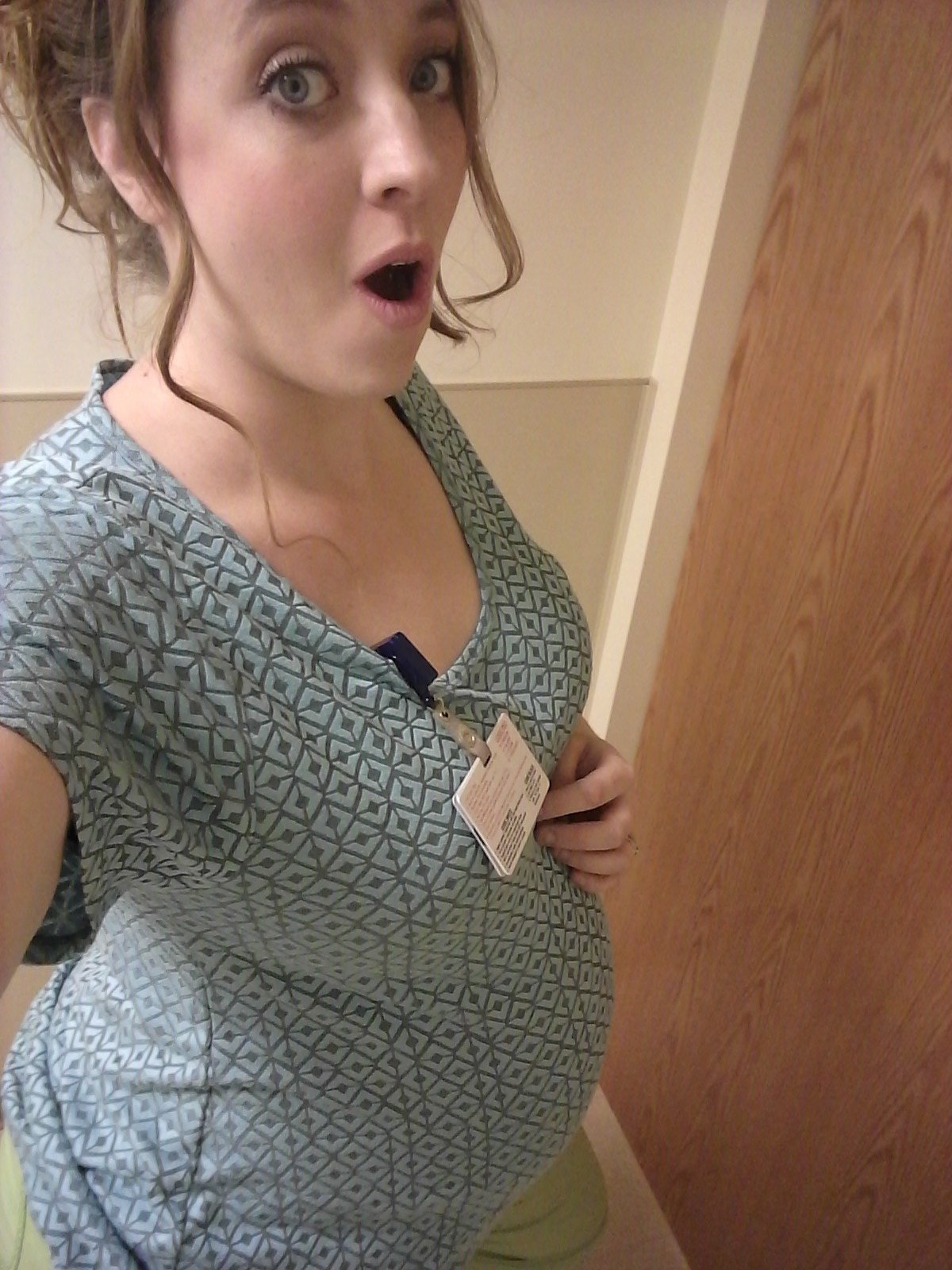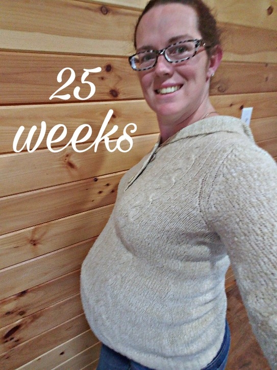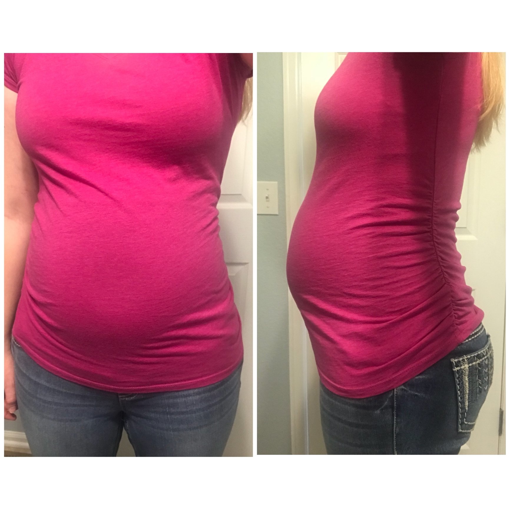 24 weeks today with baby boy! I would just like to point out that this shirt was a staple until literally the day I gave birth to DD. It looks like it is hanging on for dear life at 24 weeks with DS. Oy.