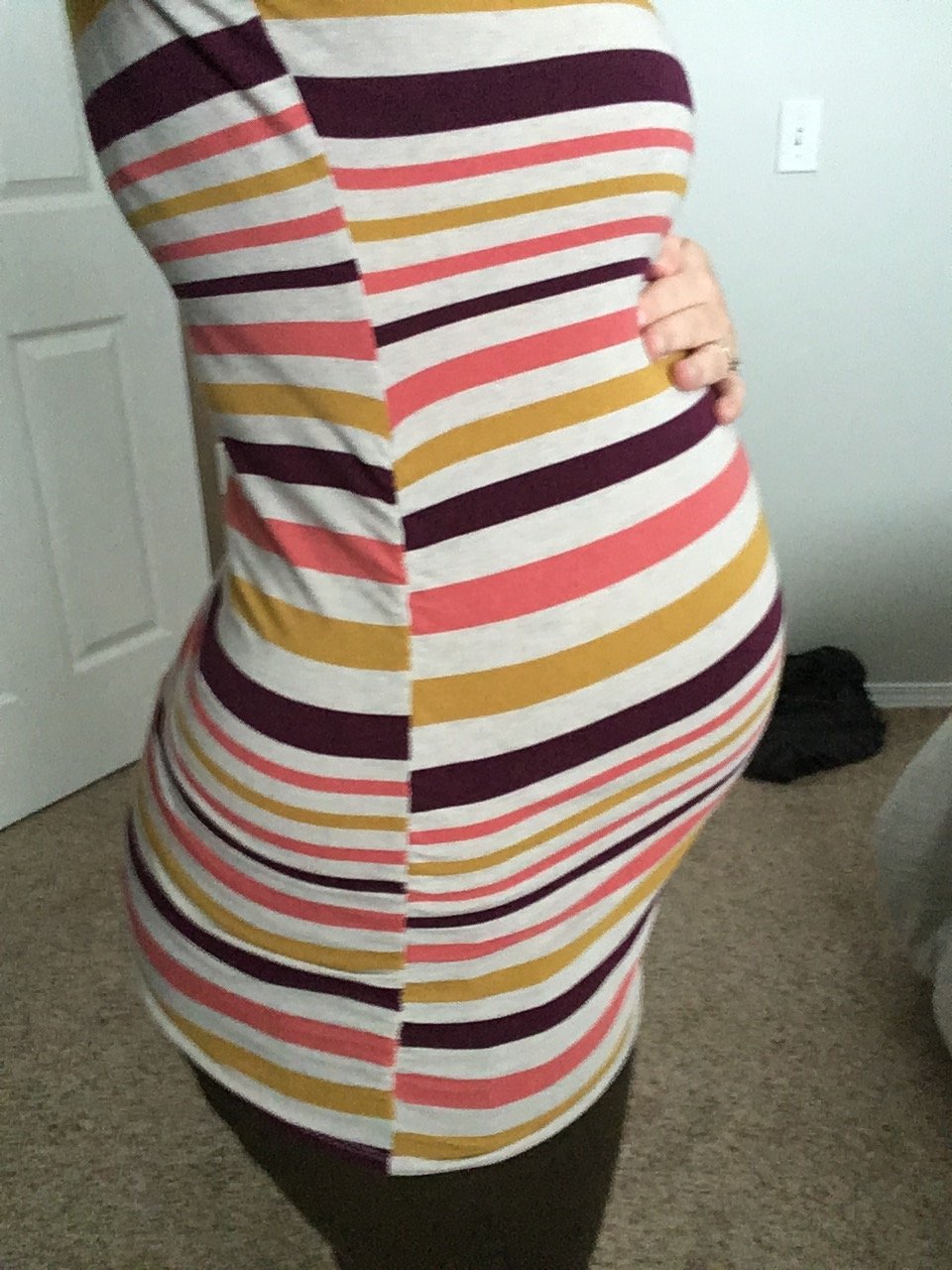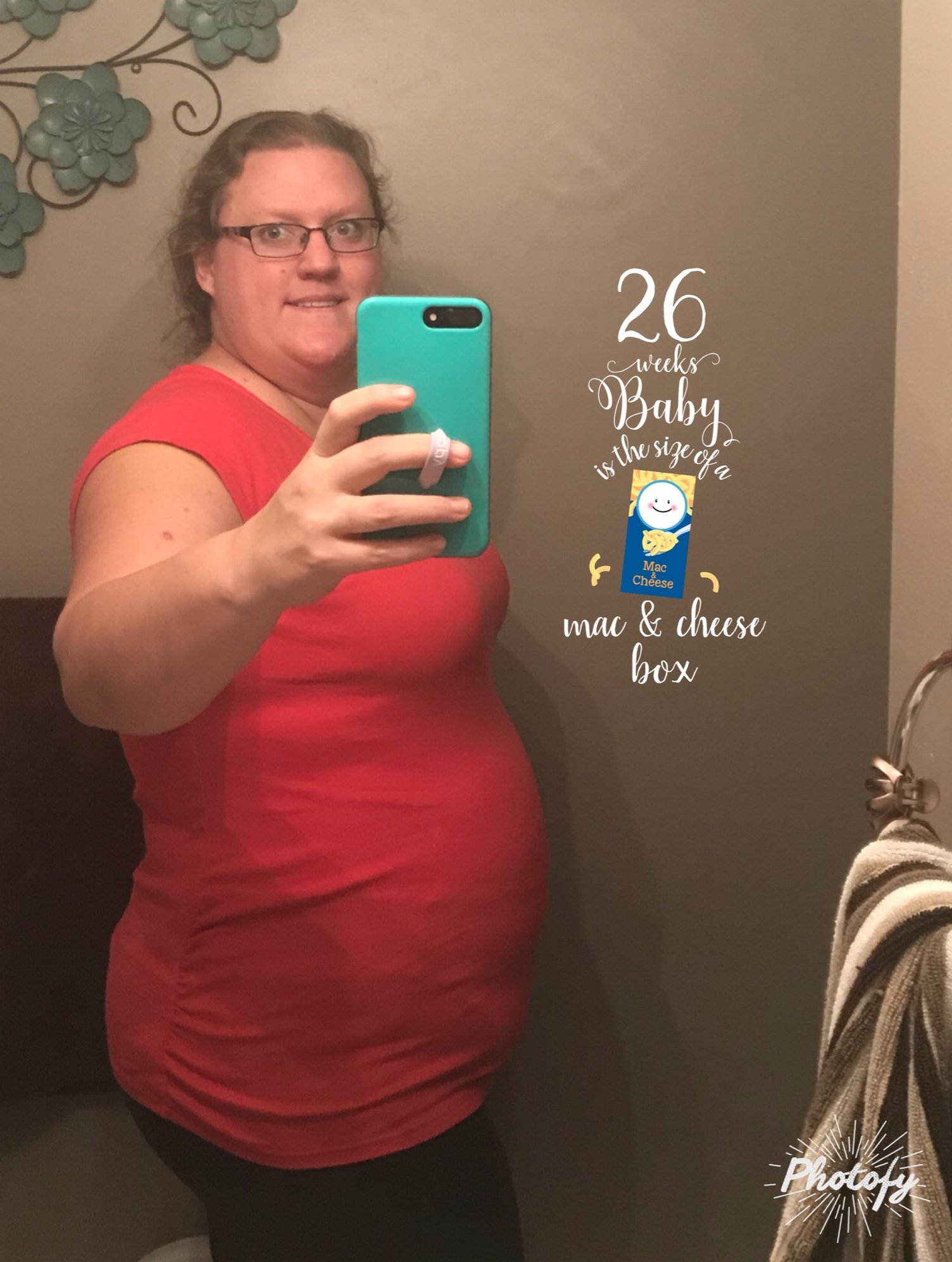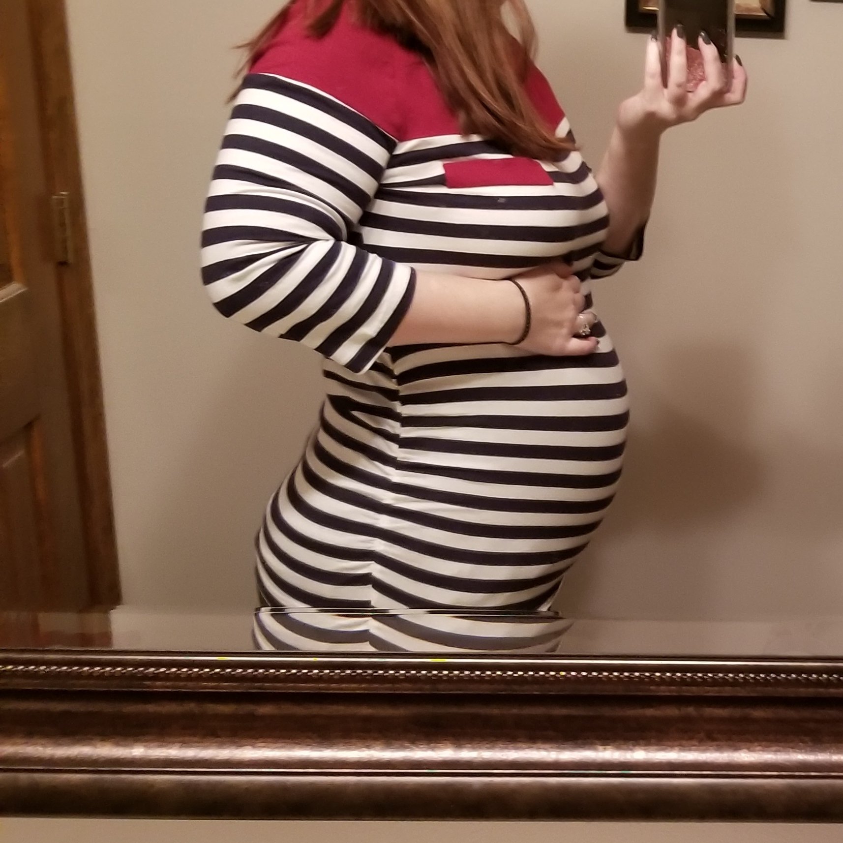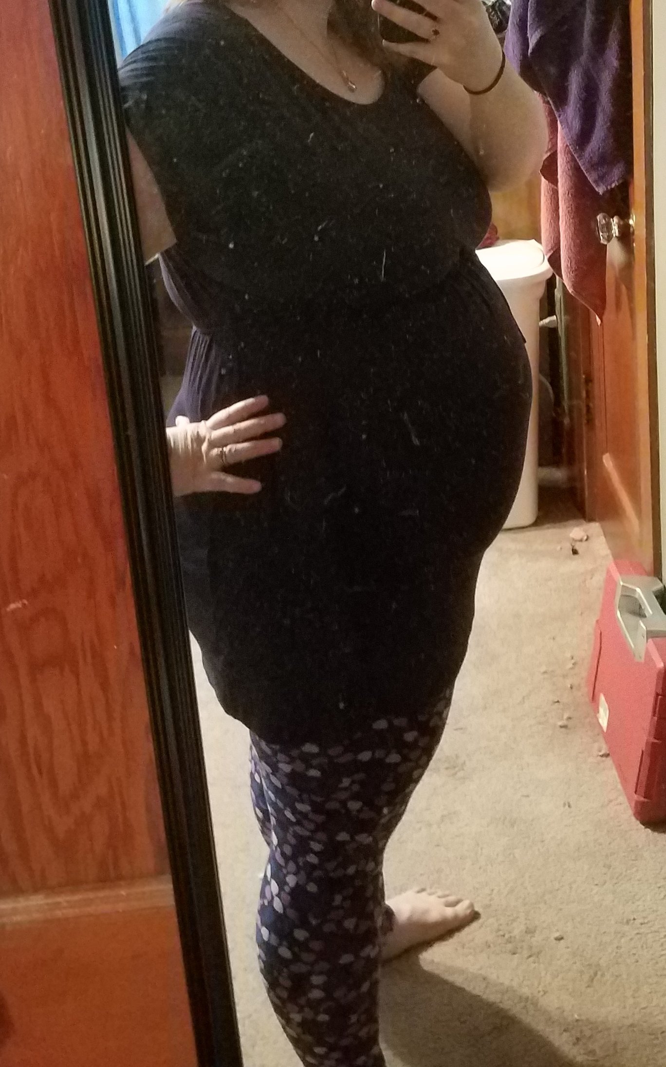 A day late to the party again. Because I didn’t put on real clothes yesterday. One of these Wednesday’s I will. 26+4. I feel like this pic makes my bump look smaller then it is. Idk.