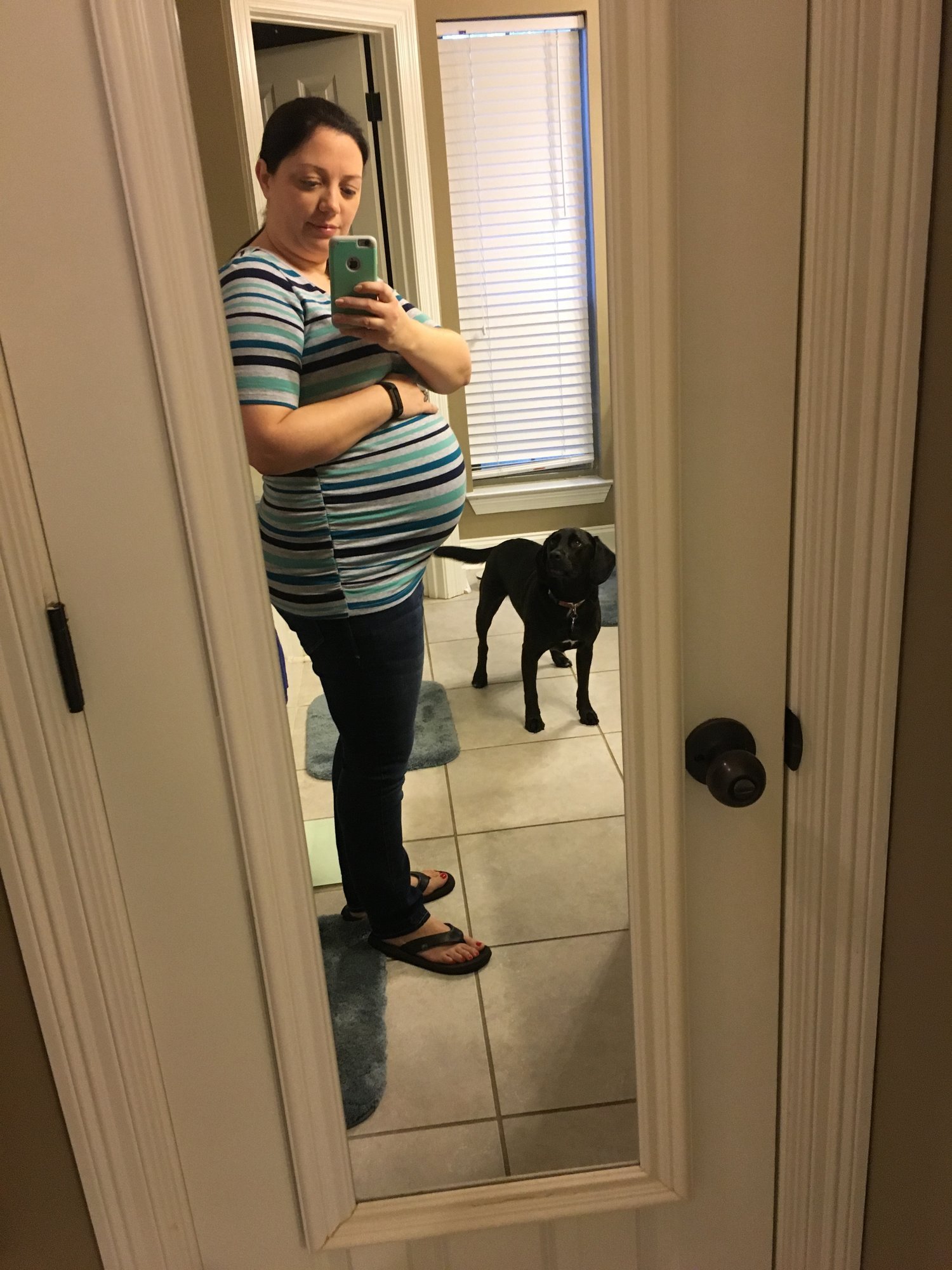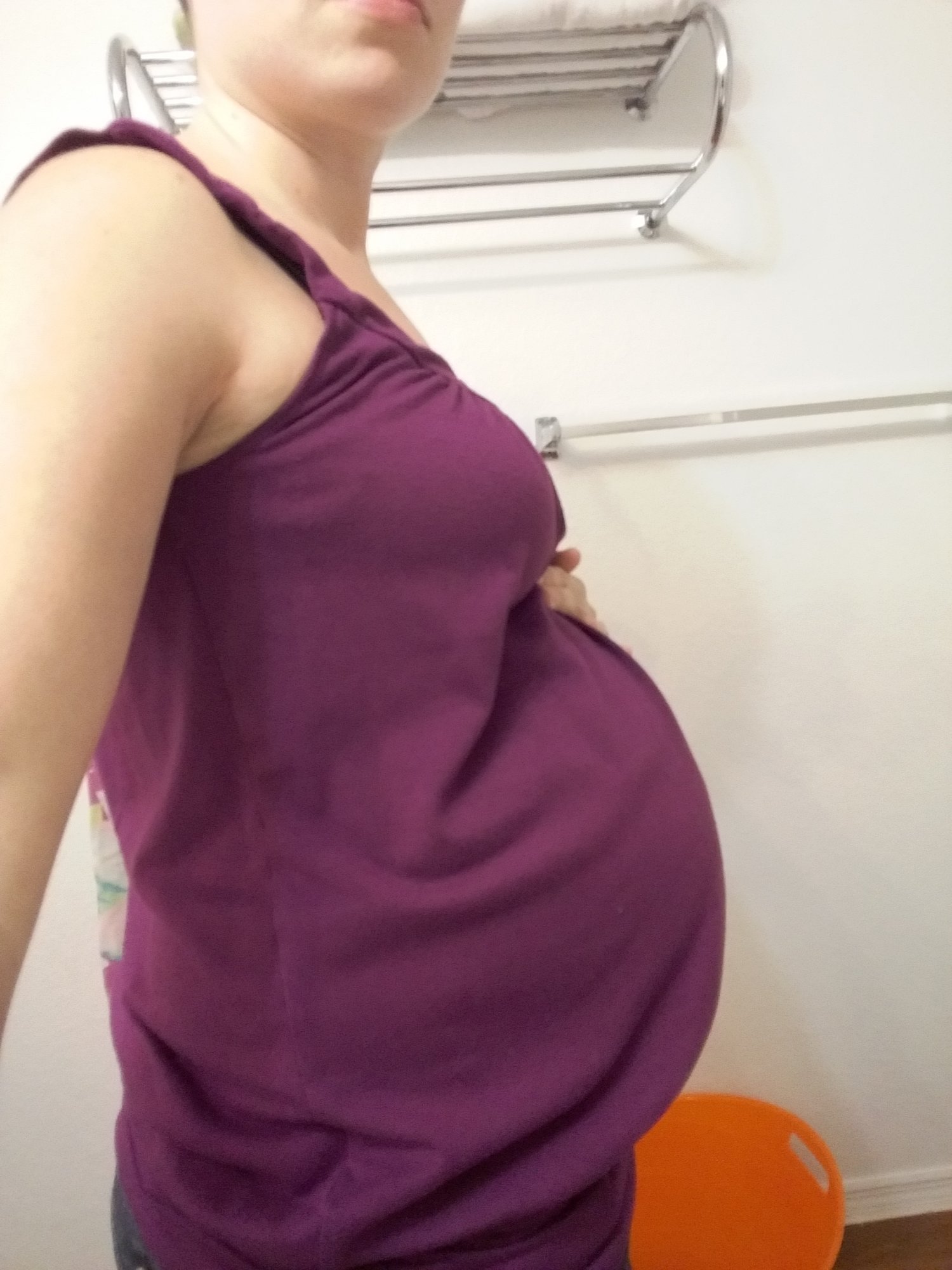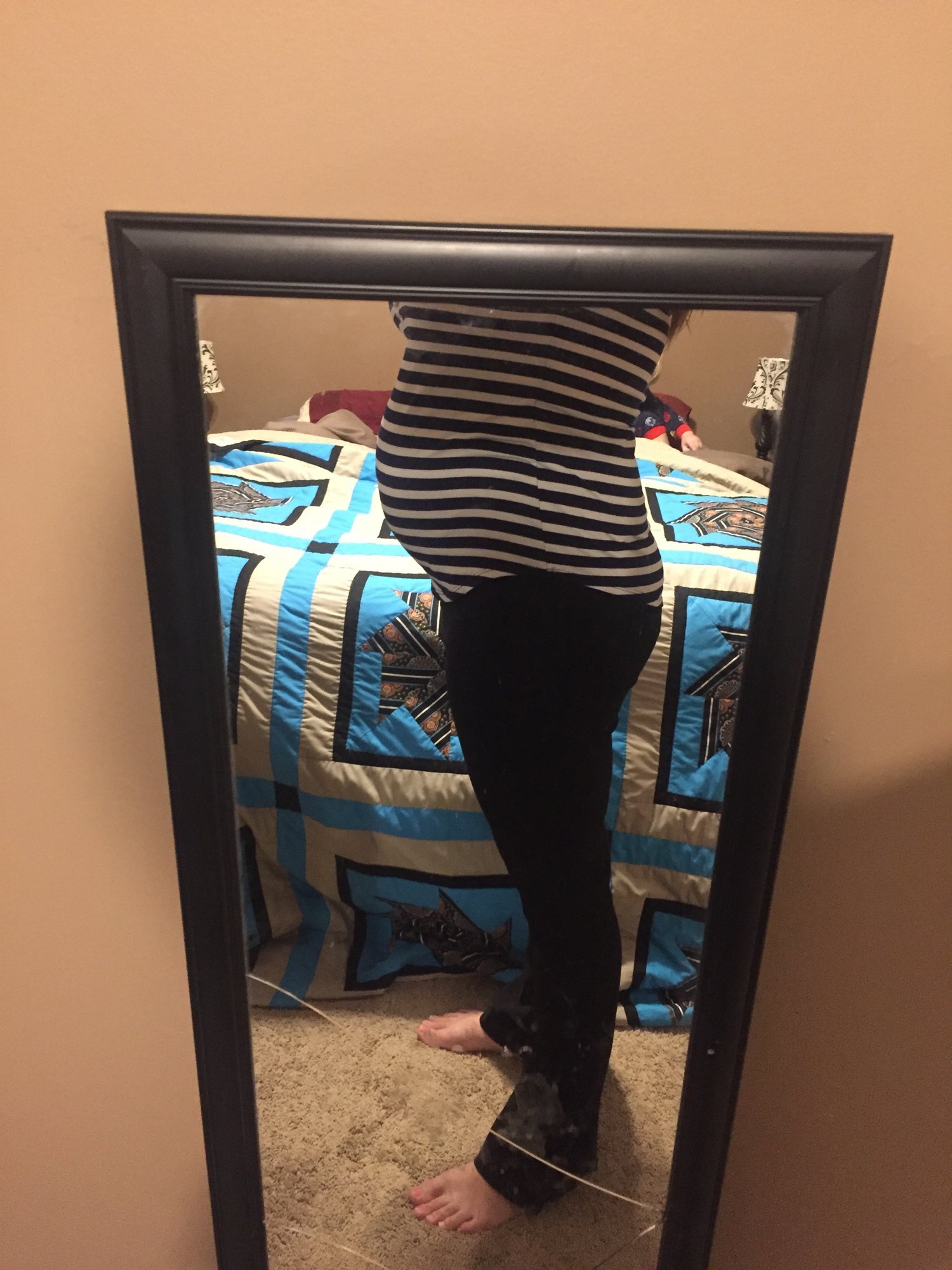 A day late to the party again. Because I didn’t put on real clothes yesterday. One of these Wednesday’s I will. 26+4. I feel like this pic makes my bump look smaller then it is. Idk.