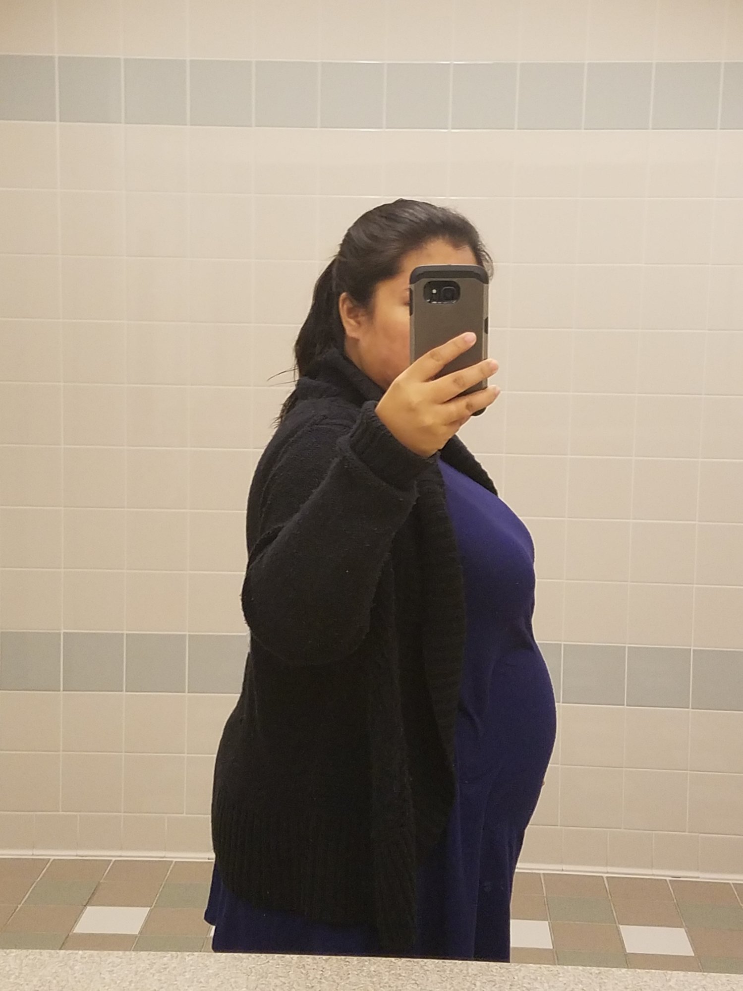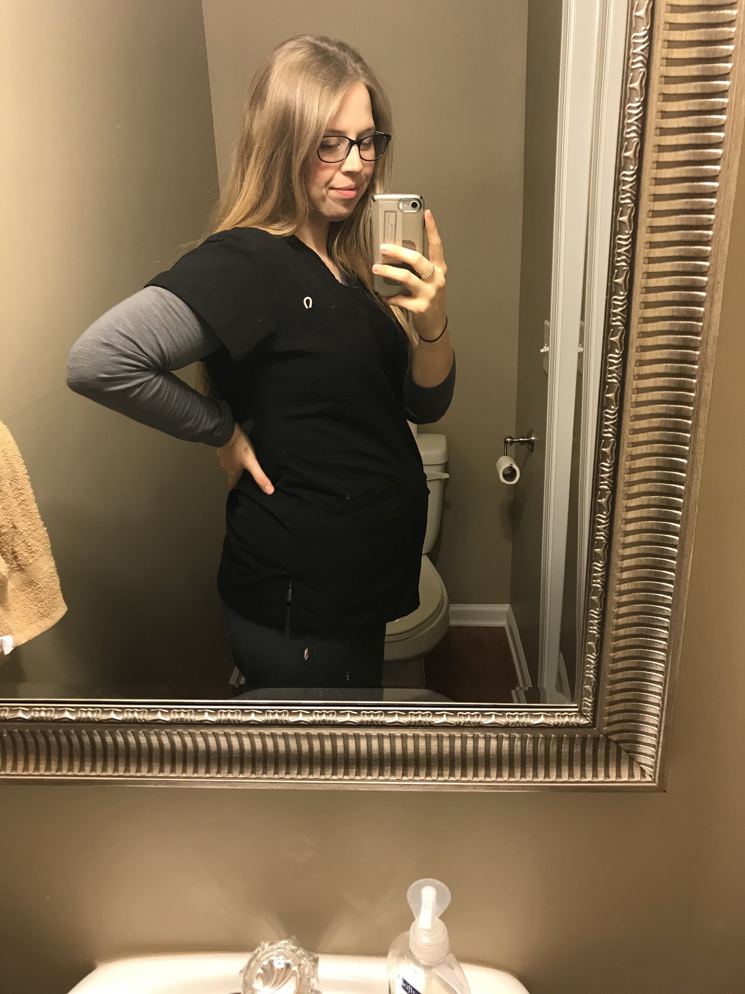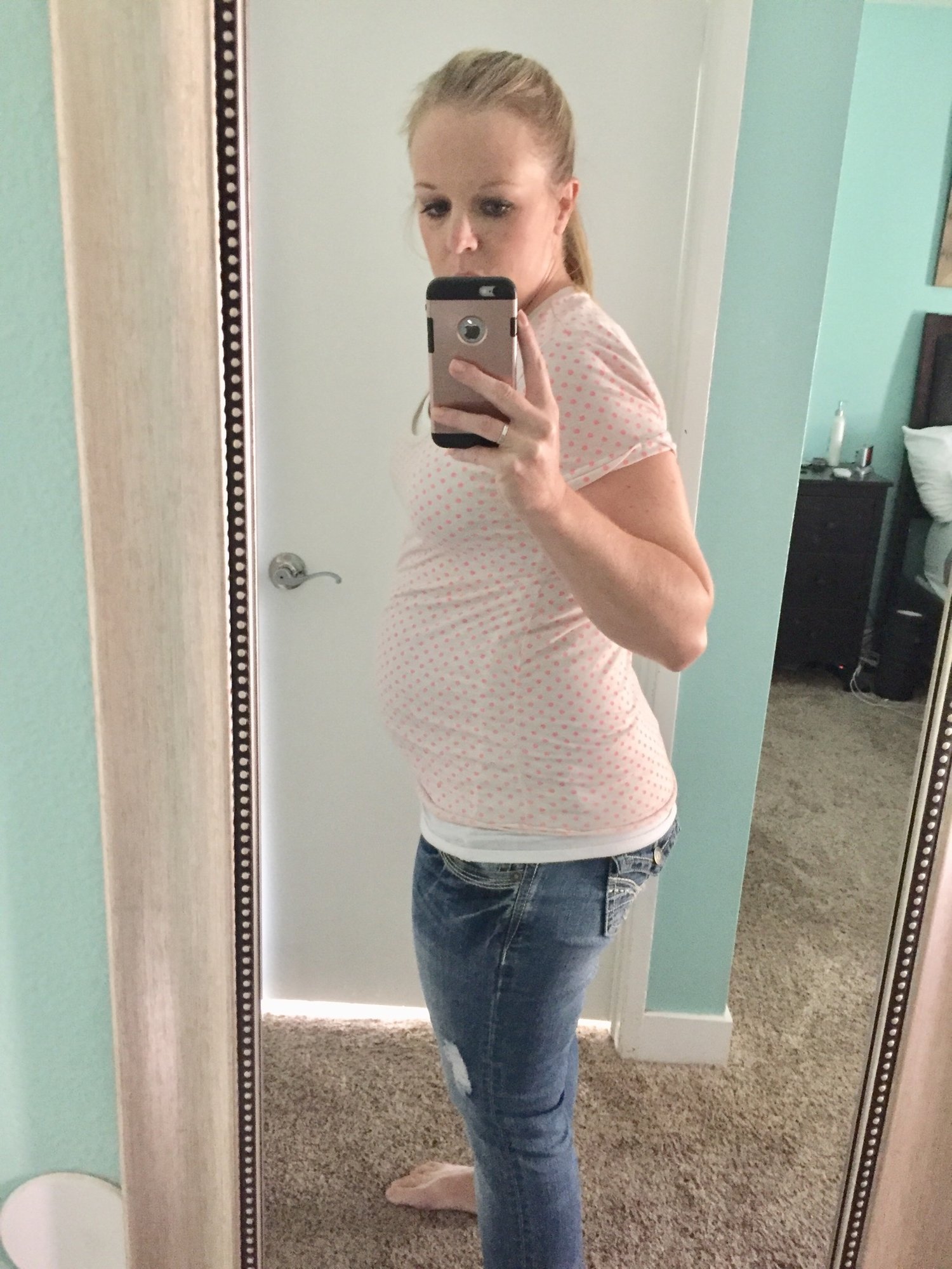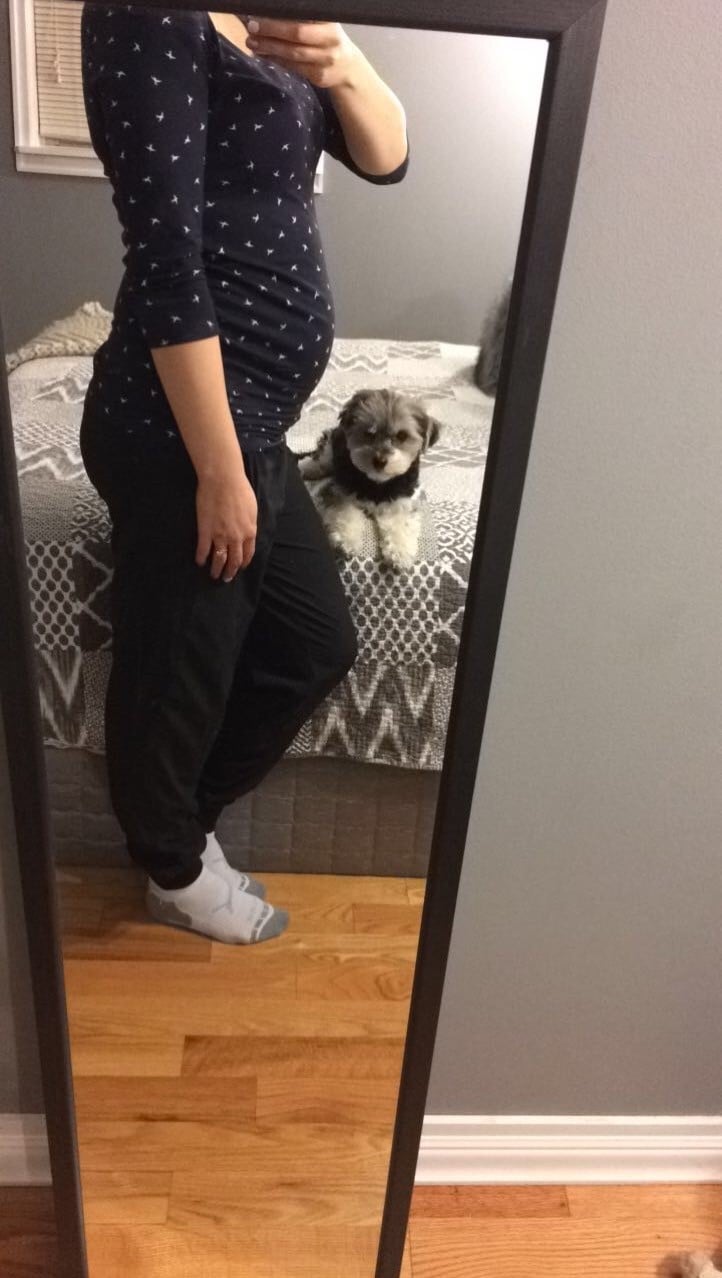 A day late to the party again. Because I didn’t put on real clothes yesterday. One of these Wednesday’s I will. 26+4. I feel like this pic makes my bump look smaller then it is. Idk.