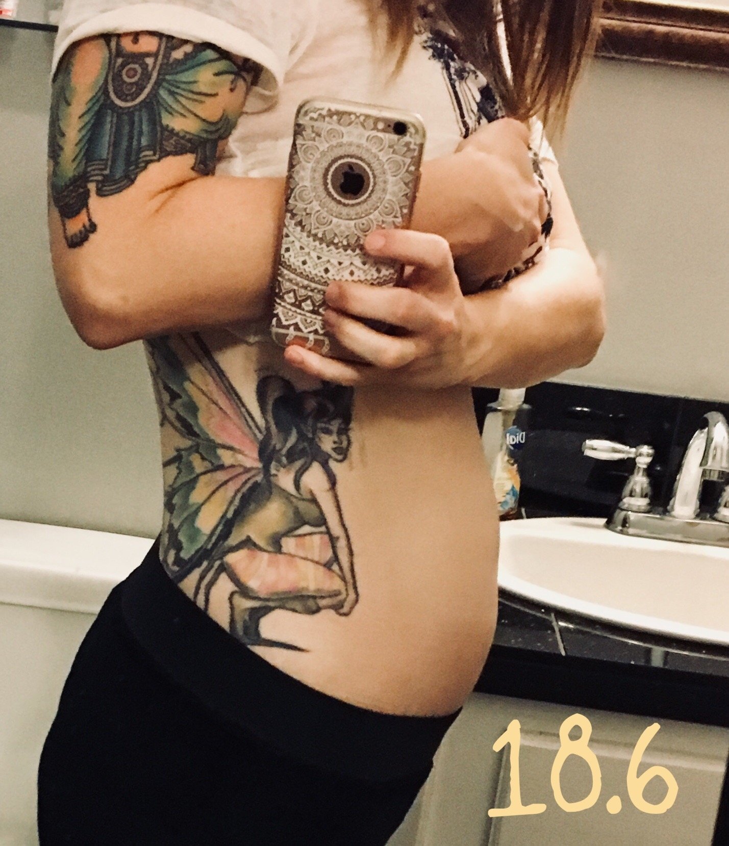 Super late due to focusing on surviving the hell-slog the last week has been, but I wanted to make sure my 20 week pic made it. 20 weeks 4 days, and starting to get uncomfortable. Thank God my back pain is gone though