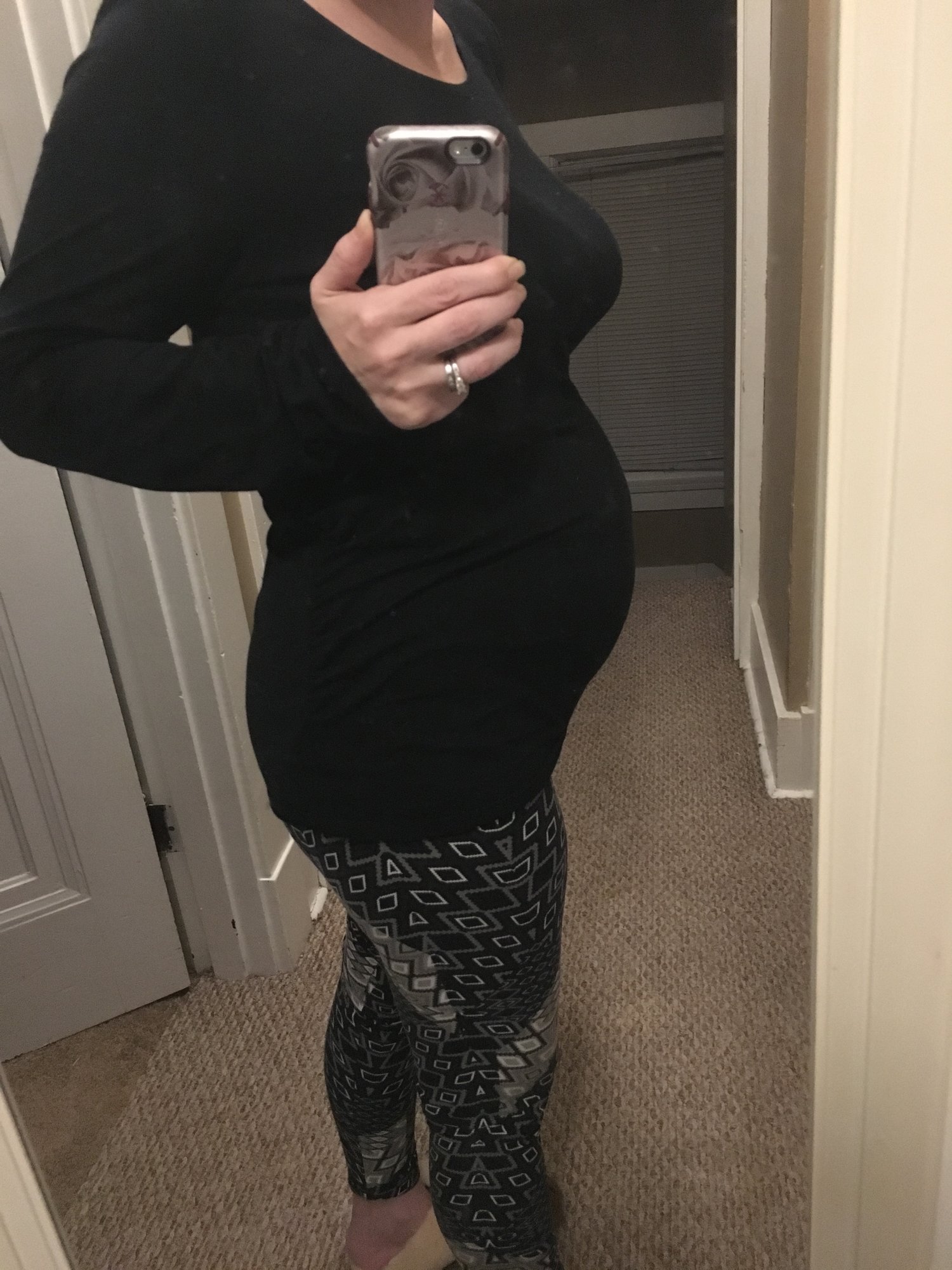 Here's my bump comparison from baby #1 and current Pregnancy (baby #2). I'm definitely feeling wider lol